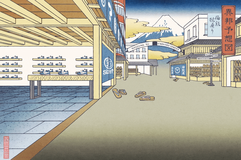 While over in Tokyo last year working on this project, we got the chance to meet up with Segawa at his home on the outskirts of Tokyo to find out more about how he discovered Ukiyo-e in the first place, and why it’s an important part of Japanese history that should be preserved for future generations to enjoy. We later commissioned him to create his own interpretation of a Ukiyo-e print incorporating the ASICSTIGER GEL-LYTE OG ’36 Views’, depicting a fictional thirty seventh view of Mount Fuji.