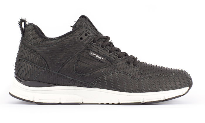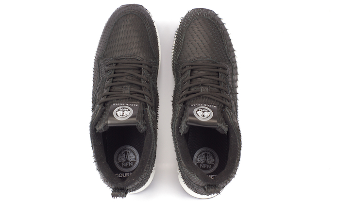 With the understanding that a brands success is only as strong as the people that surround it, Gourmet has selected West Cost lifestyle brand and mutual friends Black Scale to collaborate on this versatile model in a very unorthodox manner. Maintaining the same minimal outline, they have applied all-black, full grain imported cactus leather to the upper exhibiting a snake-like appearance, in turn showcasing a texture that pops out and instantly grabs your attention.
