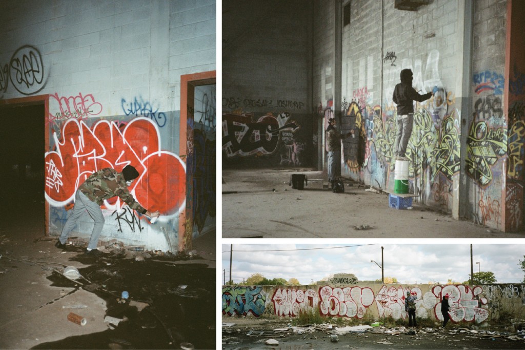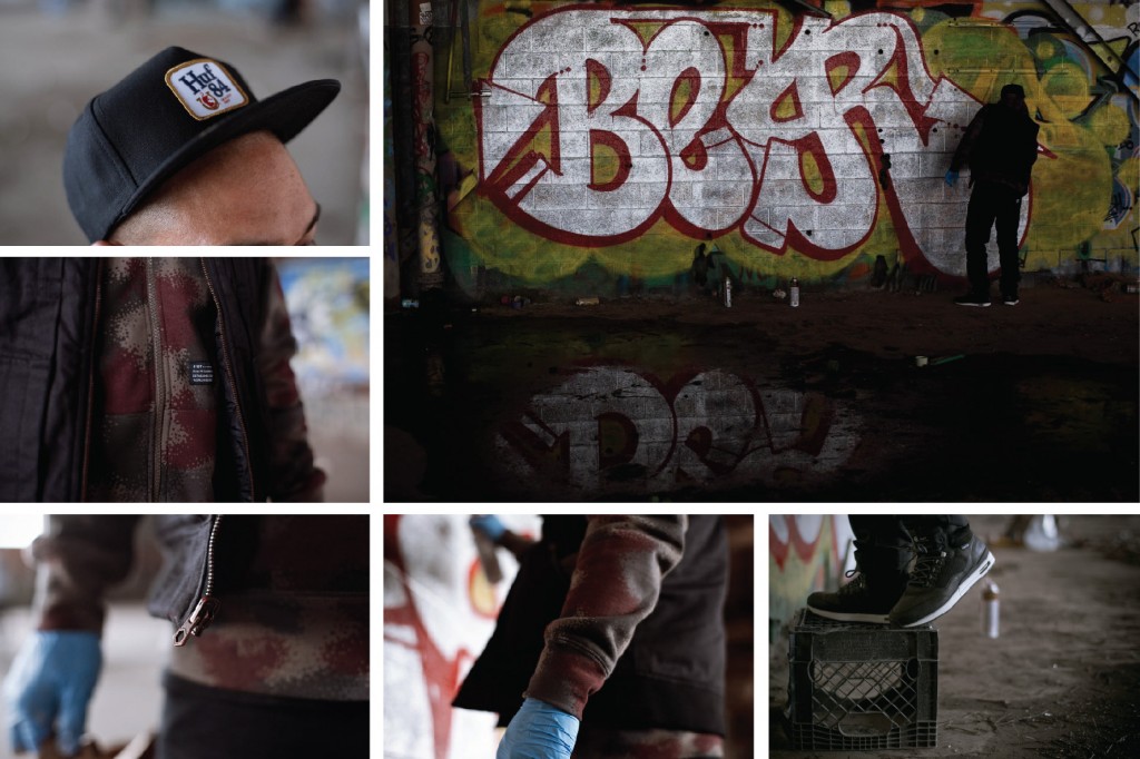 Shot in the unlit streets, alleyways and derelict buildings situated in and around the bustling city of Detroit by Brandon Kuzma, the video heavily acknowledges the street art and culture that the collection derives from. Taking a darker direction to previous lookbooks, we’re taken on a night-time journey with world-known graffiti writers Remio, Begr, Kuma and Krink to name just a few, whilst still highlighting a selection of sweaters and headwear from the season’s offerings.