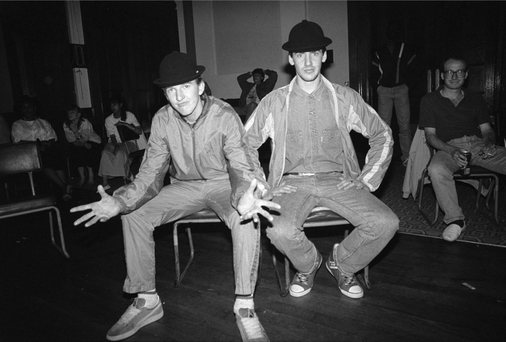 B-Boys chilling at the Youth Against Aparteid event, Camden Town Hall, London, 1986 © Normski