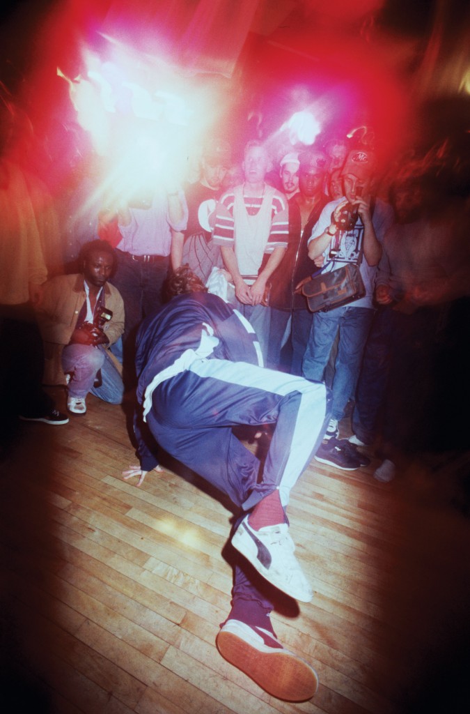 UK Breakdancer at a hip-hop jam in a club in Leicester Square, London, late 1980’s © Normski