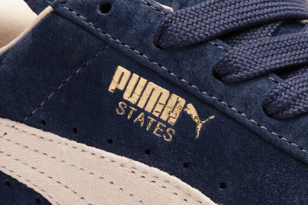 Essentially, the States is a more premium execution of the Suede, with the main differences being across the sole unit, tongue and upper itself. The PUMA States has a more vintage feel with an off white execution of the sole unit and laces and the tongue is foam backed. The collar has been produced with a perforated leather lining and the grade of suede used on the upper is of a higher quality.