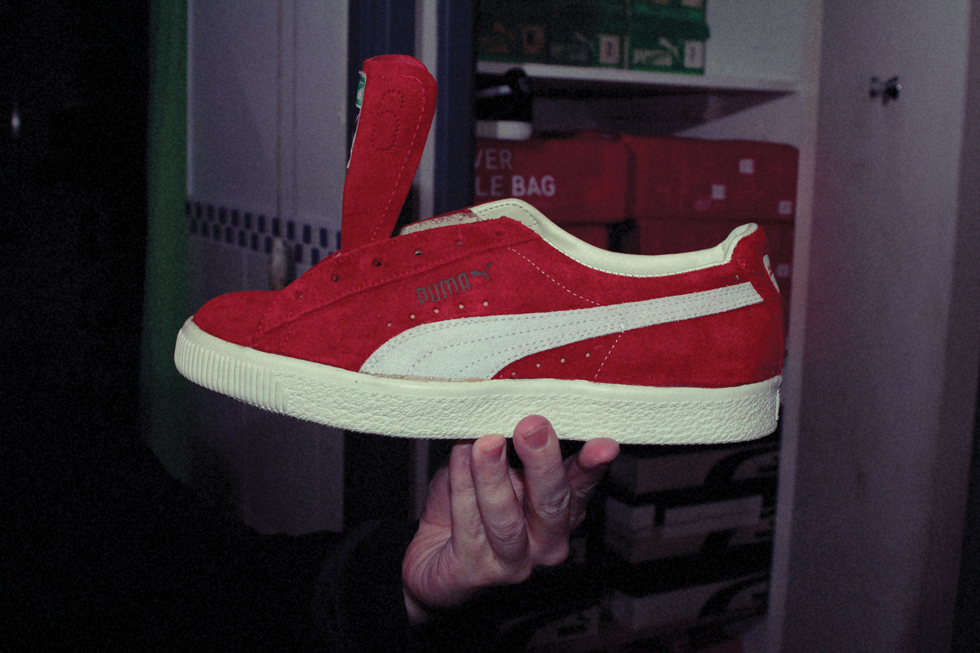 The PUMA Suede. It was elusive; the only dudes in the UK that had a pair, you’d see walking around Covent Garden, and they’d most likely new someone in the US to get a pair for them. I have a memory that people used to call them PUMA ‘Joints’ at the time. This is my first recollection of seeing these shoes and falling in love with them. There were slight differences to this shoe if you compare it to the newer versions you see nowadays: Today the form stripe curves much more and the sole is a little thinner and not quite as flat. These are the things I love about the original. The soles are really thick and really flat and everything about it is just super streamline. It’s a perfect shoe!