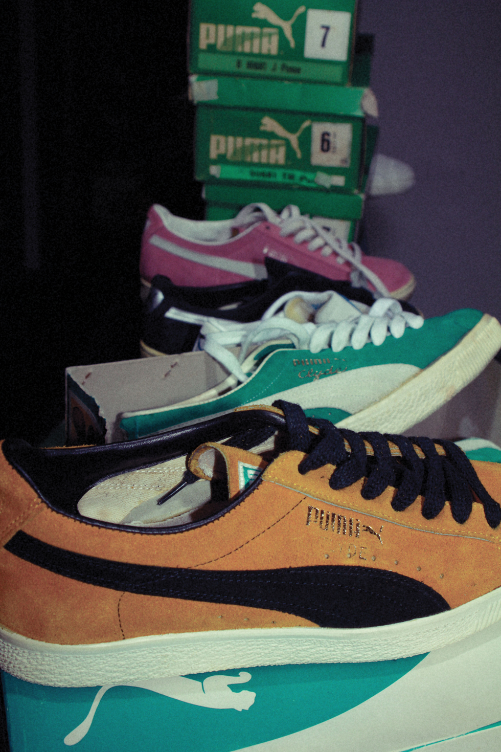 It’s these. PUMA Suede’s or ‘States’ as they were called in the UK. Honestly, my interest in PUMA begins and ends with this shoe. It’s the beauty and the simplicity to it. It’s like a Porsche – there’s nothing about it that you’d change or improve! The design details have been tinkered with over the years, but this is the original s**t. These outsoles are perfectly straight, completely flat. Perfect.