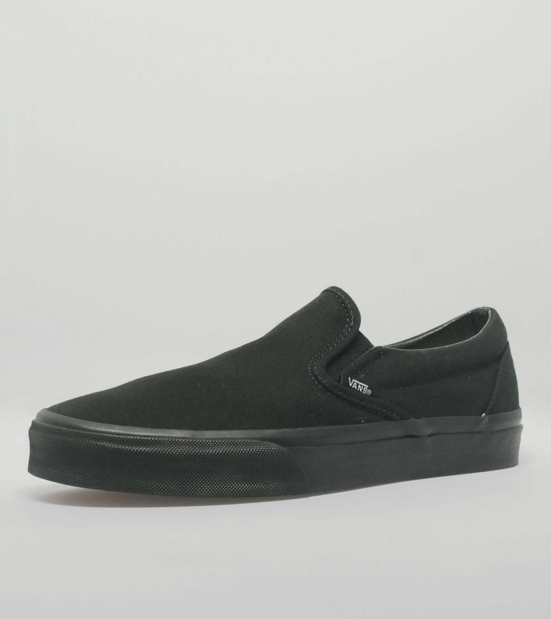 Vans have been designing various types of skateboard shoes since 1976 and this time round they have released a classic known as the Slip-On in a smooth clean black colourway on a canvas upper plus the much loved chunky mid and waffle outsole. Vans branding is present on the back of the heel and via a brand tab woven onto the side.
