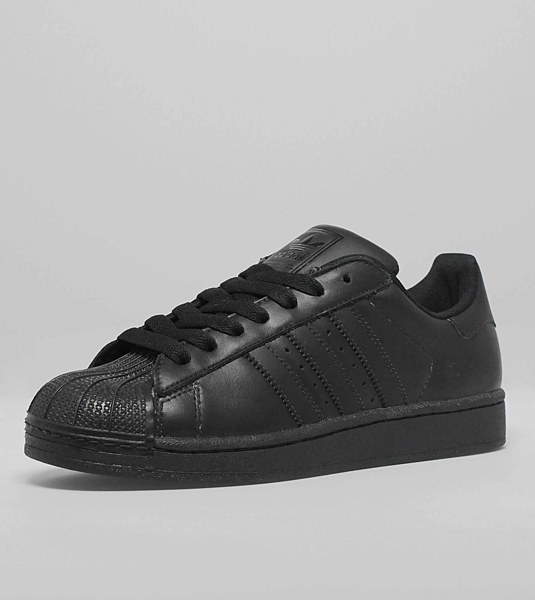 As the choice brand of the 80’s, adidas Originals resurrect one of their more famous designs the legendary Superstar. This version comes with the classic rubber shell toe, perforated detailing between the jagged three stripe branding and a clean black leather upper. Other elements include trefoil branding on the heel piece and further adidas Originals branding on the tongue, all sitting on top of a chunky midsole.