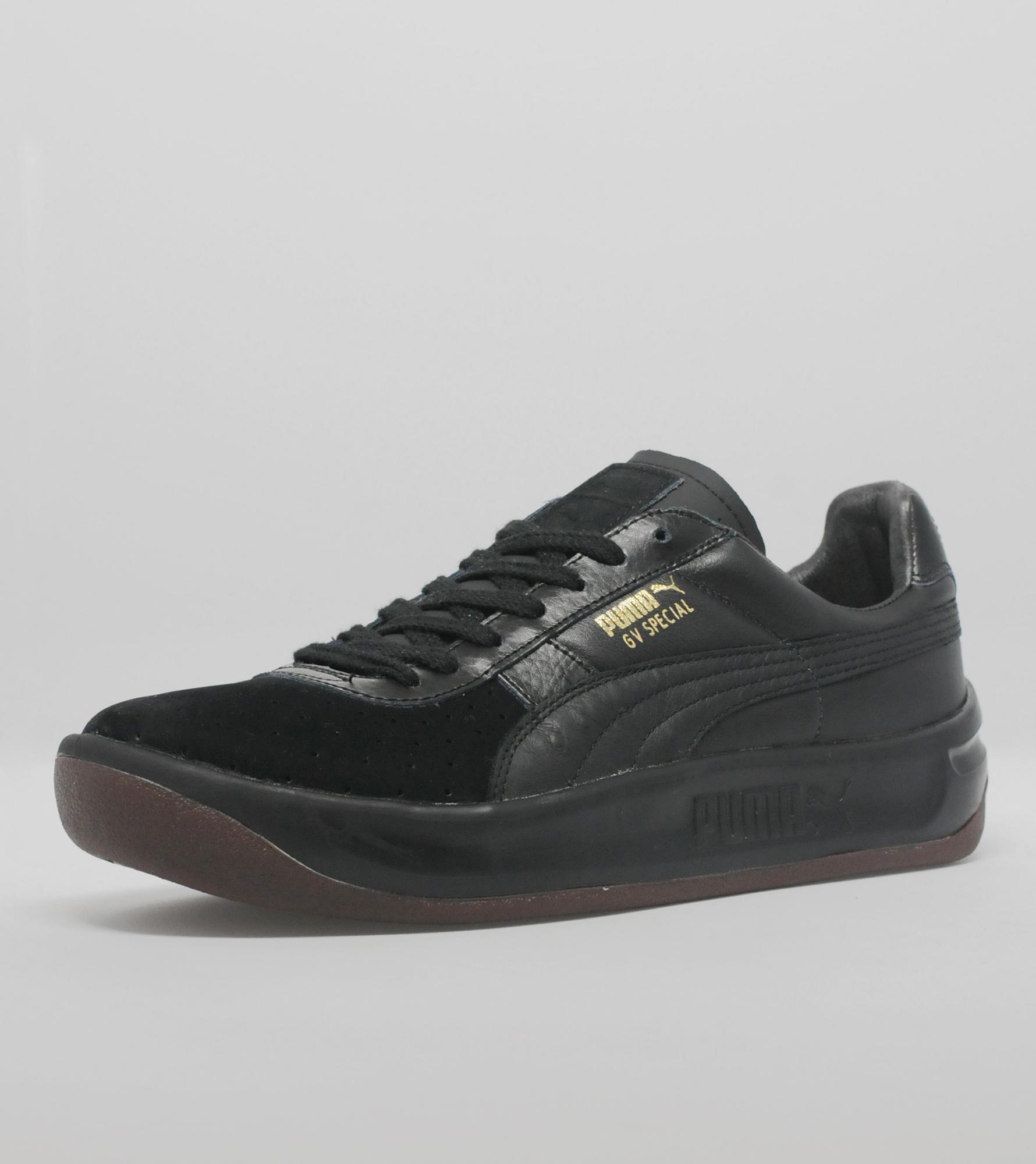 Puma presents this GV Special taking inspiration from Argentinian tennis icon Guillermo Vila. This colourway is presented in a black leather upper with a suede perforated toebox. This shoe is sat on a black midsole with Puma branding with a brown outsole. Th GV Special is finished with Gold branding to the sidewall, branding to the heel plus a branded suede tongue tab and tonal laces with gold metal tips.