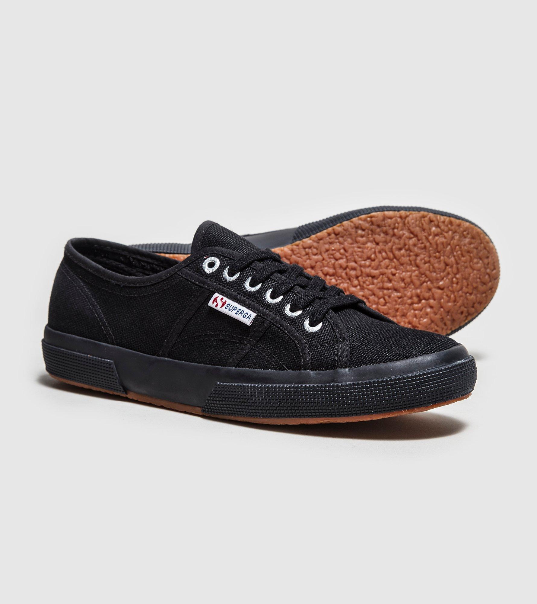 Established in Turin Italy in 1911, Superga started to produce shoes with vulcanized rubber soles and later increased the popularity of the 2750 with a more technical range. This classic 2750 Cotu silhouette is presented with a premium black coloured canvas and a black vulcanised mid sole. It features textured toe and heel bumpers, branded metallic eyelets, a textured gum outsole and a premium canvas lined inner.