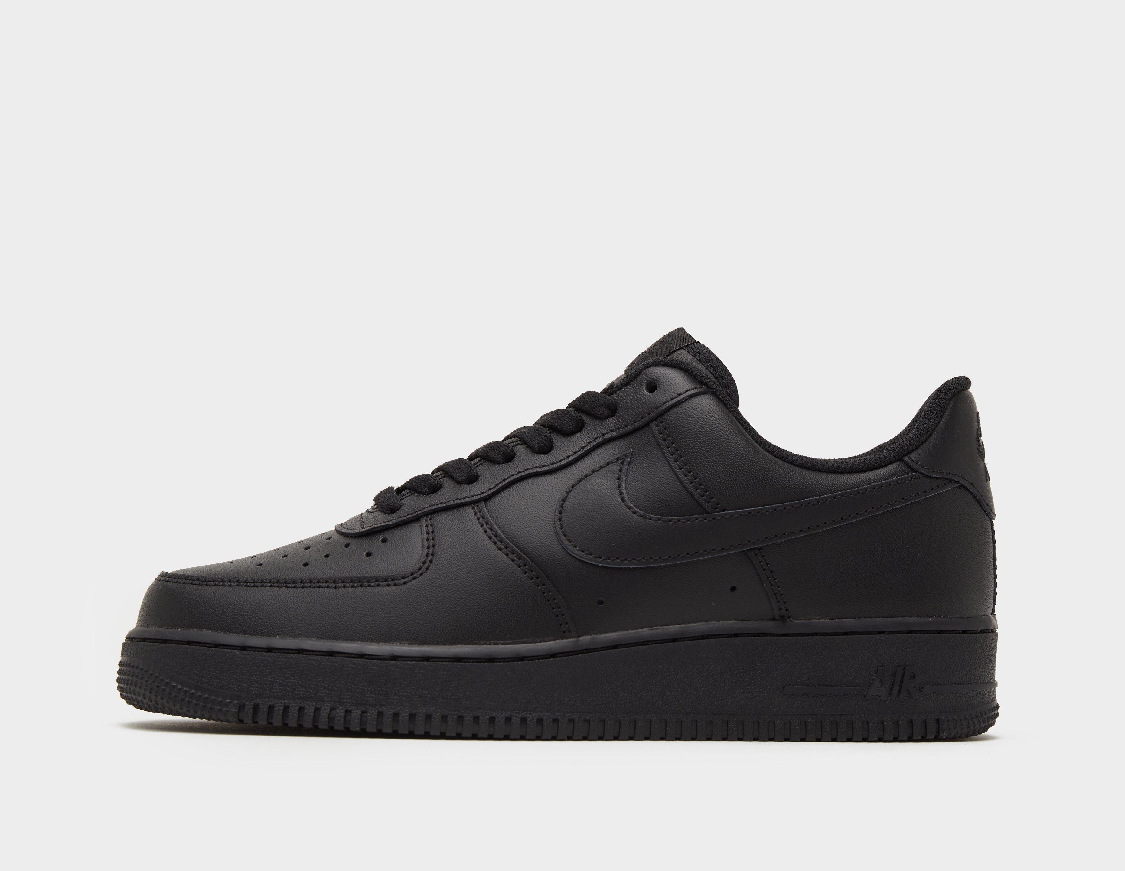 Originally launched in 1982, the Nike Air Force 1 was the first basketball shoe to house the Nike Air technology and thus revolutionised basketball trainer design. This model is presented in a premium black leather upper with the famous chucky cup sole, swoosh branding on both sides and embossed Air branding on the rear of the sole.