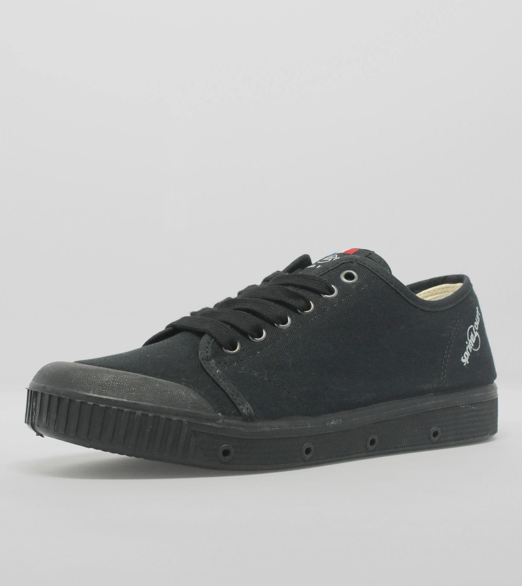 In 1936, a man named Theodore Grimmeisen revolutionized sports footwear. After creating the Tennis shoe a shoe with cotton top and vulcanized sole, the Spring Court was born. In 1952, this patent was adapted to improve natural ventilation with an insole to arch the foot and incorporate ventilation. Today the Spring Court brand follows the same technology in it’s footwear. The brand present this G2 Classic in a black cotton canvas upper sat on a vulcanisde rubber sole which features four ventilation holes. The shoe features include metail eyelets, tonal stitching plus branding to the heel and tongue tab and is finished with tonal stitching.