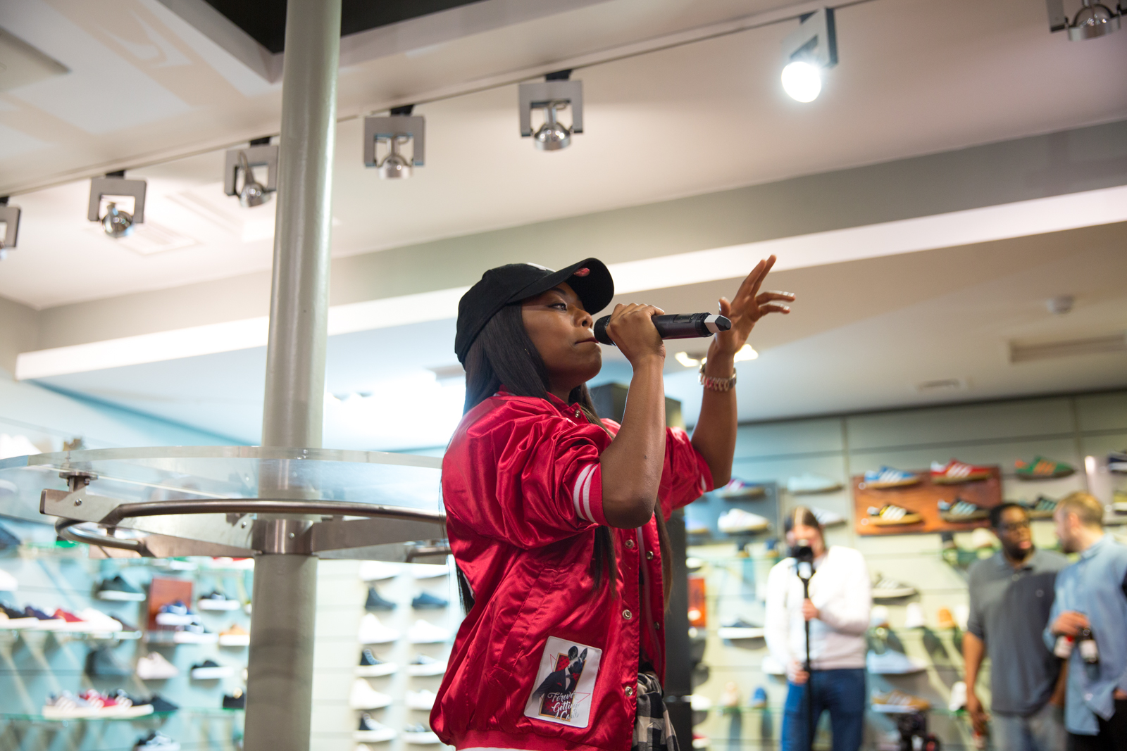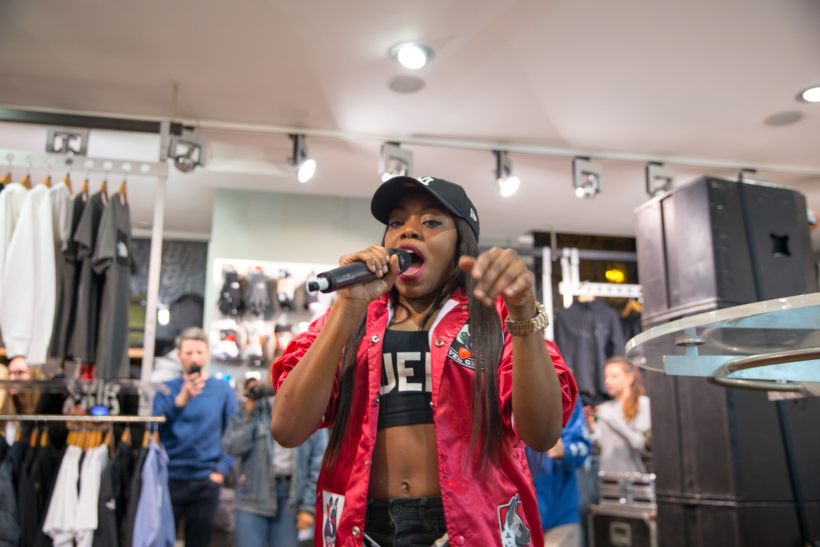 Next up in our size? sessions series we’re proud to present Lady Leshurr live from our Liverpool store. The Birmingham born MC is doing great things for British music at this point in time. In a similar vein to Mick Jenkins who we featured on sessions last month, Melesha began life as a poet, constructing thought provoking stanza’s prior to the introduction of 140bpm beats. First garnering wider recognition via SBTV’s F64 series where she dropped an incredible set of bars over SX’s beat of the moment ‘Woo Riddim’, Lesh demonstrated an extremely clever approach to delivery that rivalled a lot of established MC’s at the time. Historically growing up she used to spit bars over drum & Bass and garage, and you can definitely sense it within her style as she subtly drops garage infused vocal melodies in the middle of double-take analogies.