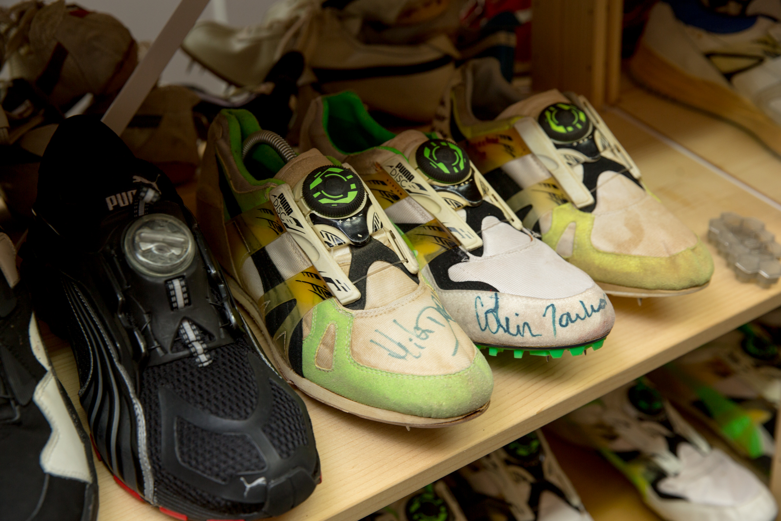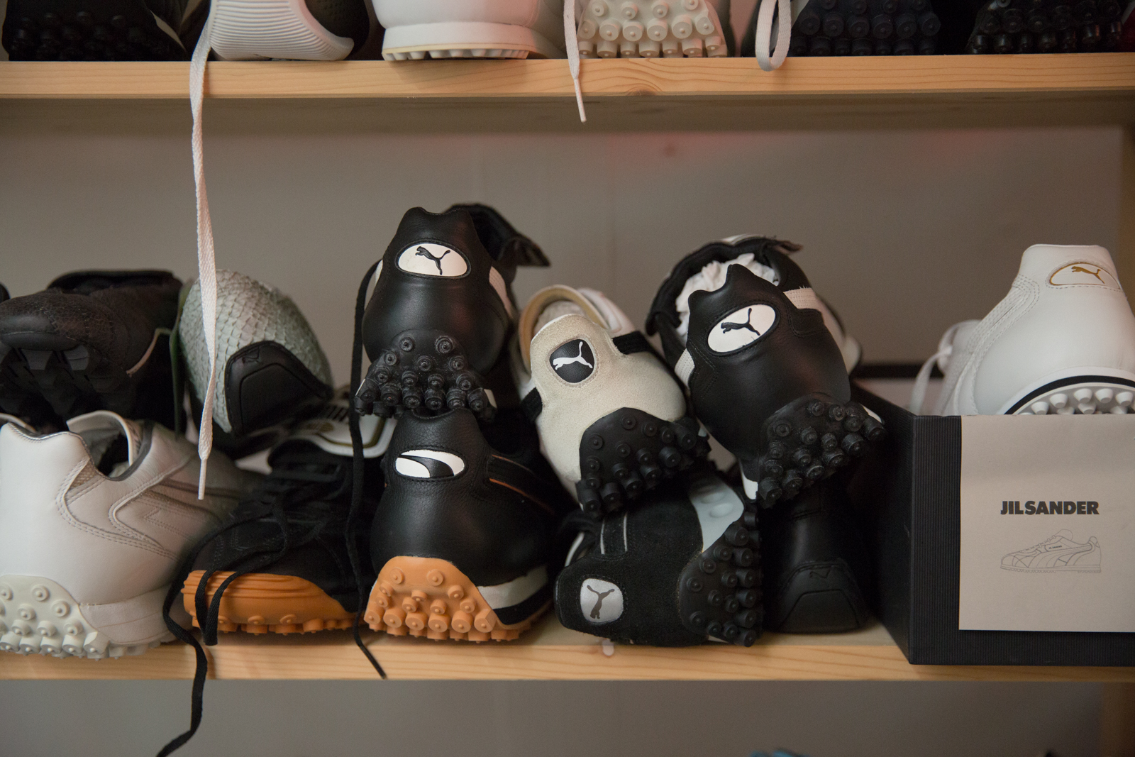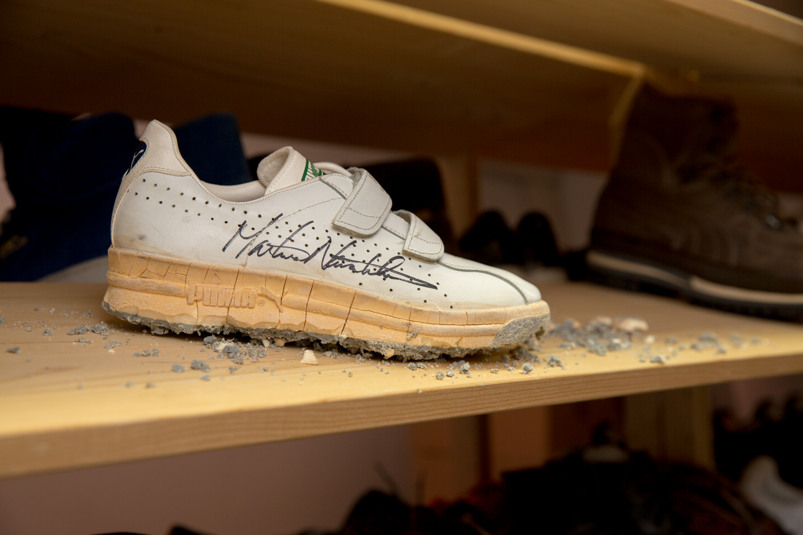 Helmut took us around the space over the course of two days, and without prompting could pick up any item from a shelf and reel off incredibly detailed soundbites about each shoe. Pairs of original Jil Sander PUMA King’s sat beside signed Usain Bolt running spikes, heavy brown leather ski-boots lay metres from a crumbling, signed pair of Martina Navaratilova’s tennis shoes from the mid 80’s.
