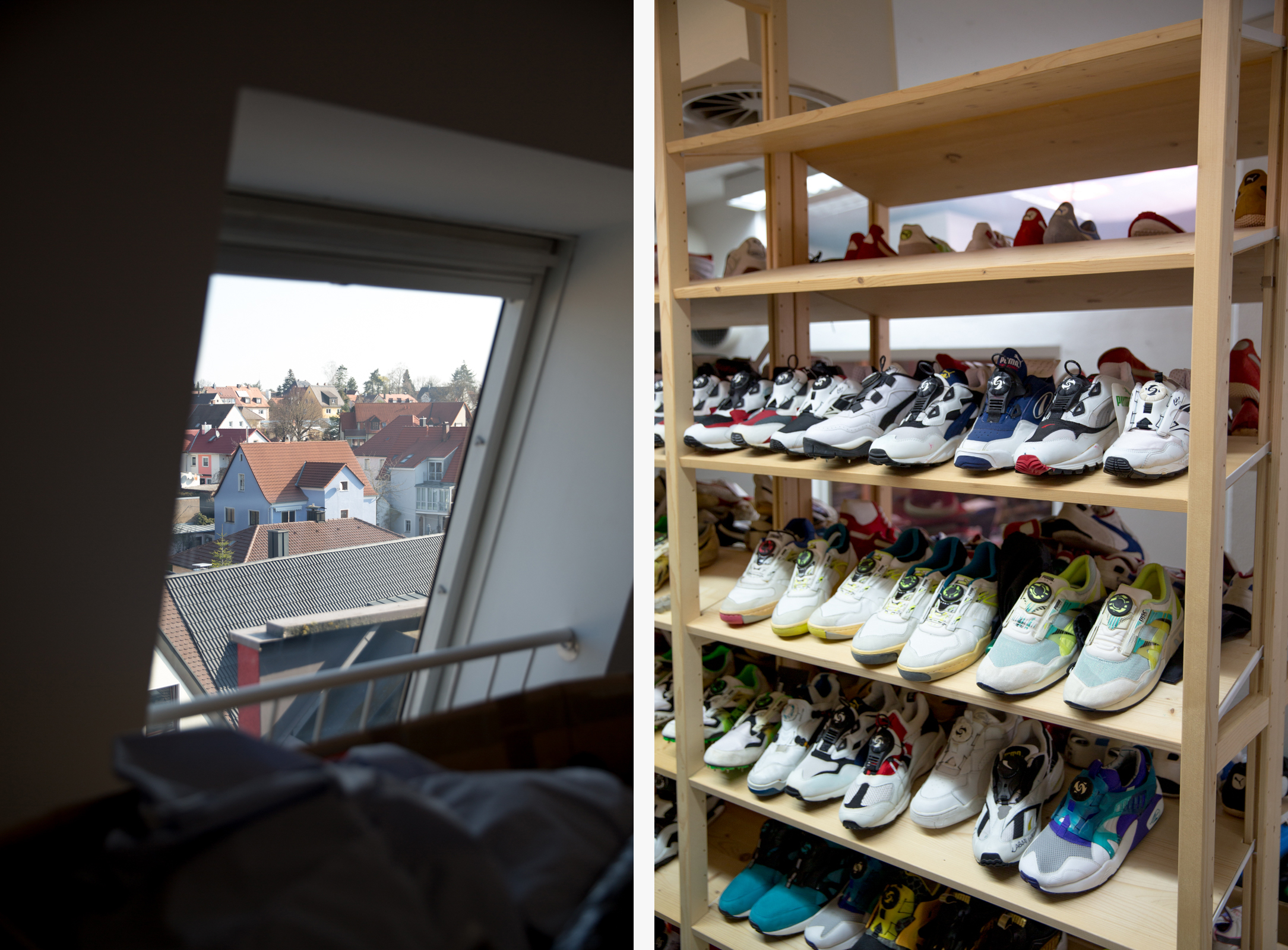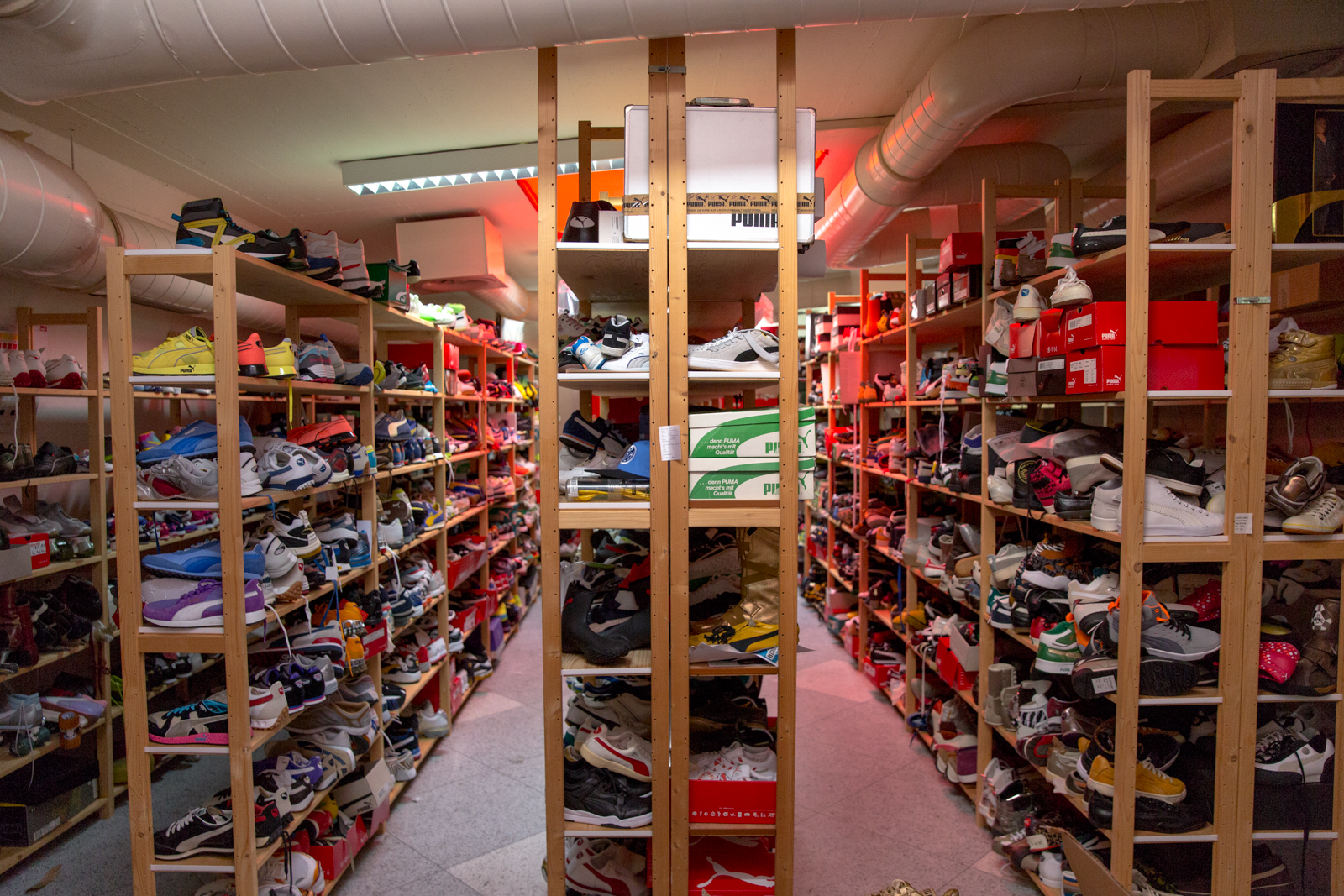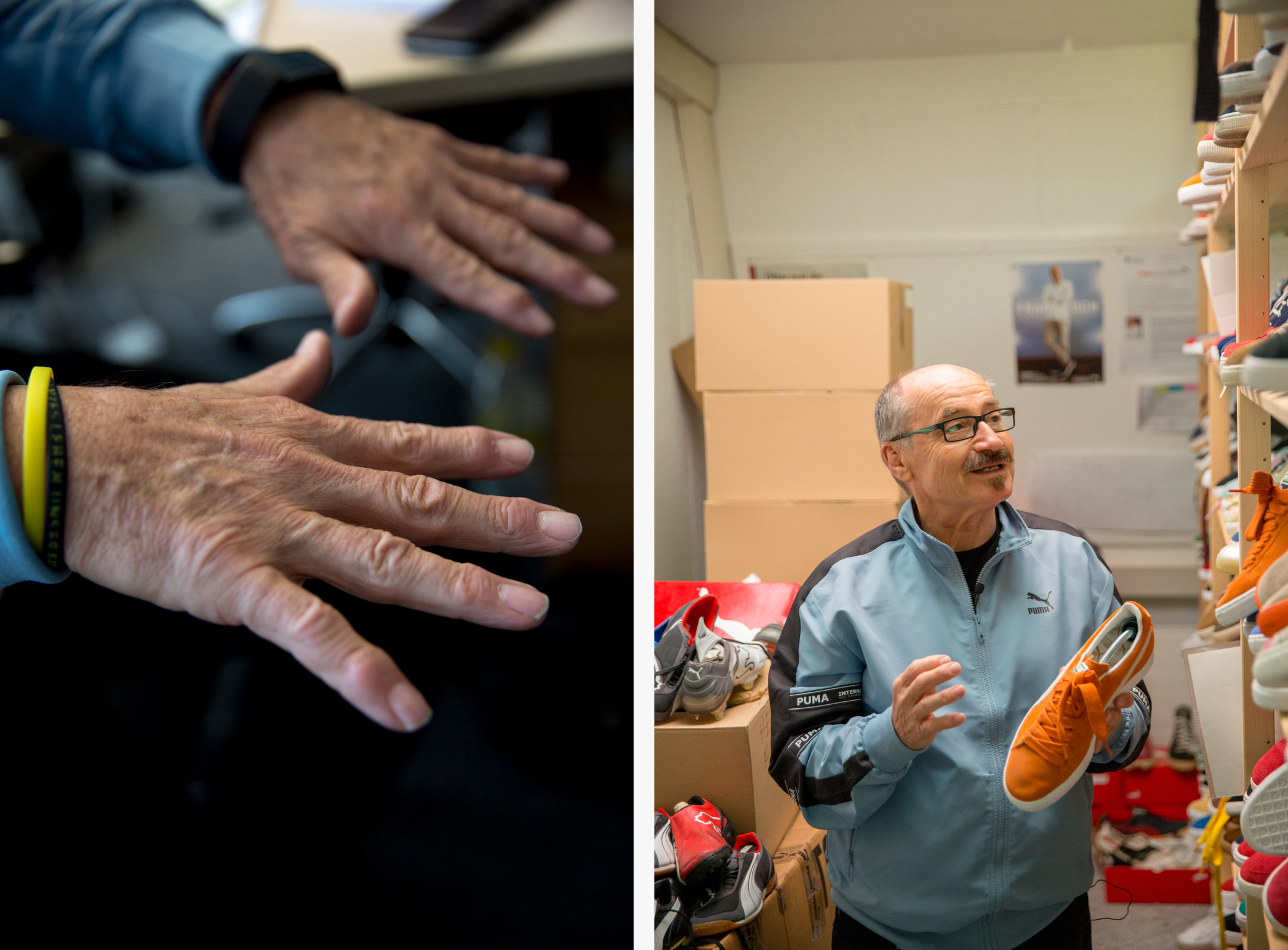 Helmut took us around the space over the course of two days, and without prompting could pick up any item from a shelf and reel off incredibly detailed soundbites about each shoe. Pairs of original Jil Sander PUMA King’s sat beside signed Usain Bolt running spikes, heavy brown leather ski-boots lay metres from a crumbling, signed pair of Martina Navaratilova’s tennis shoes from the mid 80’s.