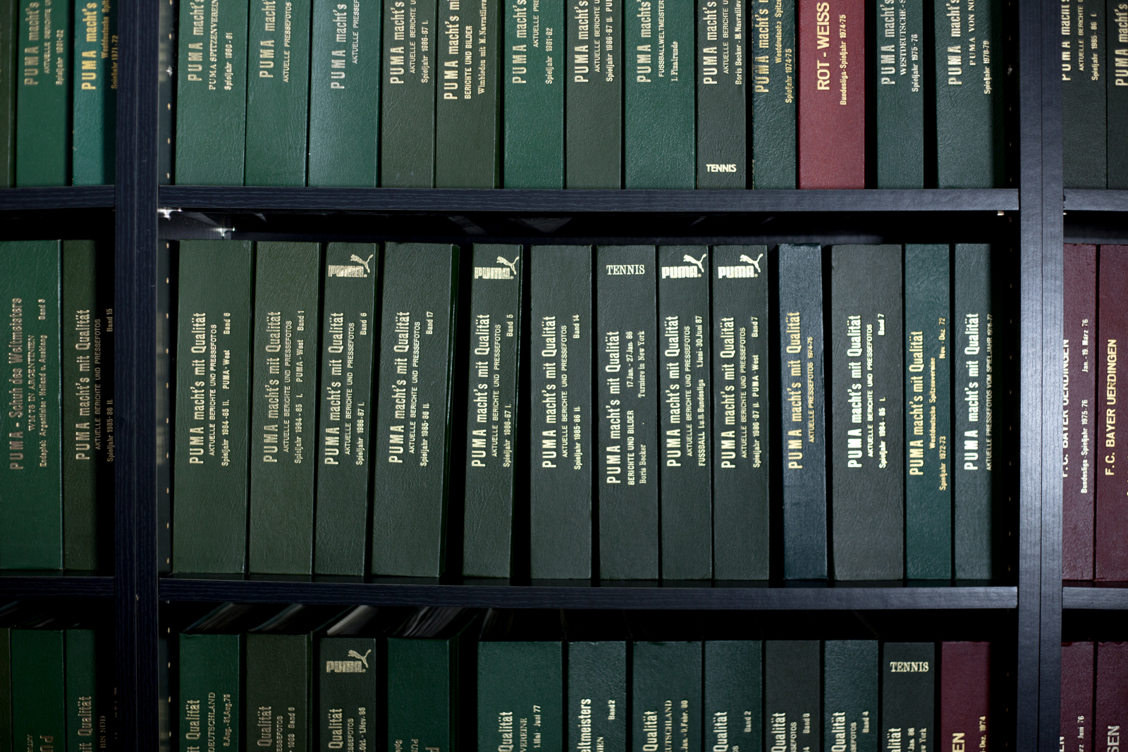 The archive isn’t just home to footwear and apparel either. Helmut was the original sports marketing manager for the brand, so a wealth of promotional adverts and marketing material has also been collected. Downstairs in the catalogue archive hundreds of leatherbound books contain old adverts and newspaper clippings of the brands most celebrated athletes that have been on contract for decades.