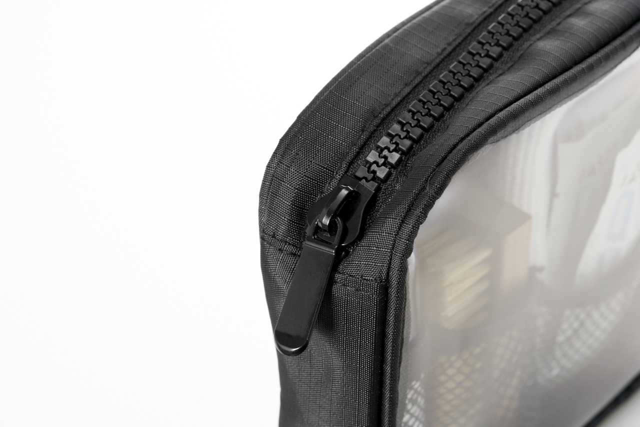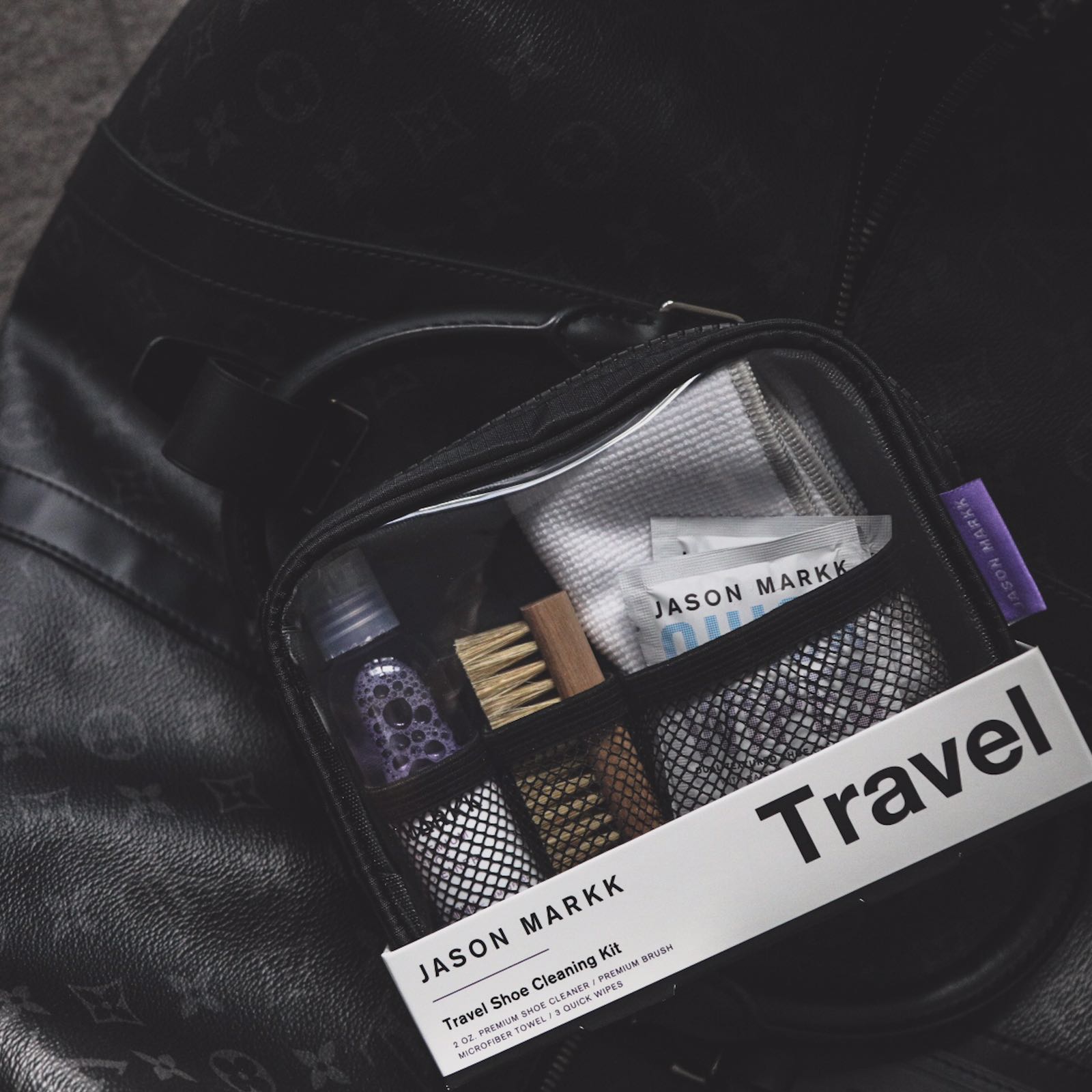 The Kit contains travel sized versions of Jason Markk’s essential cleaning products including a 2oz. Premium Shoe Cleaner, a mini Premium Brush, a 9” x 9” Microfiber Towel and three Quick Wipes. The durable ripstop nylon case features elastic mesh pockets that keep the products secure and organised. As an added benefit, the clear front window makes it easier to get through security at the airport.