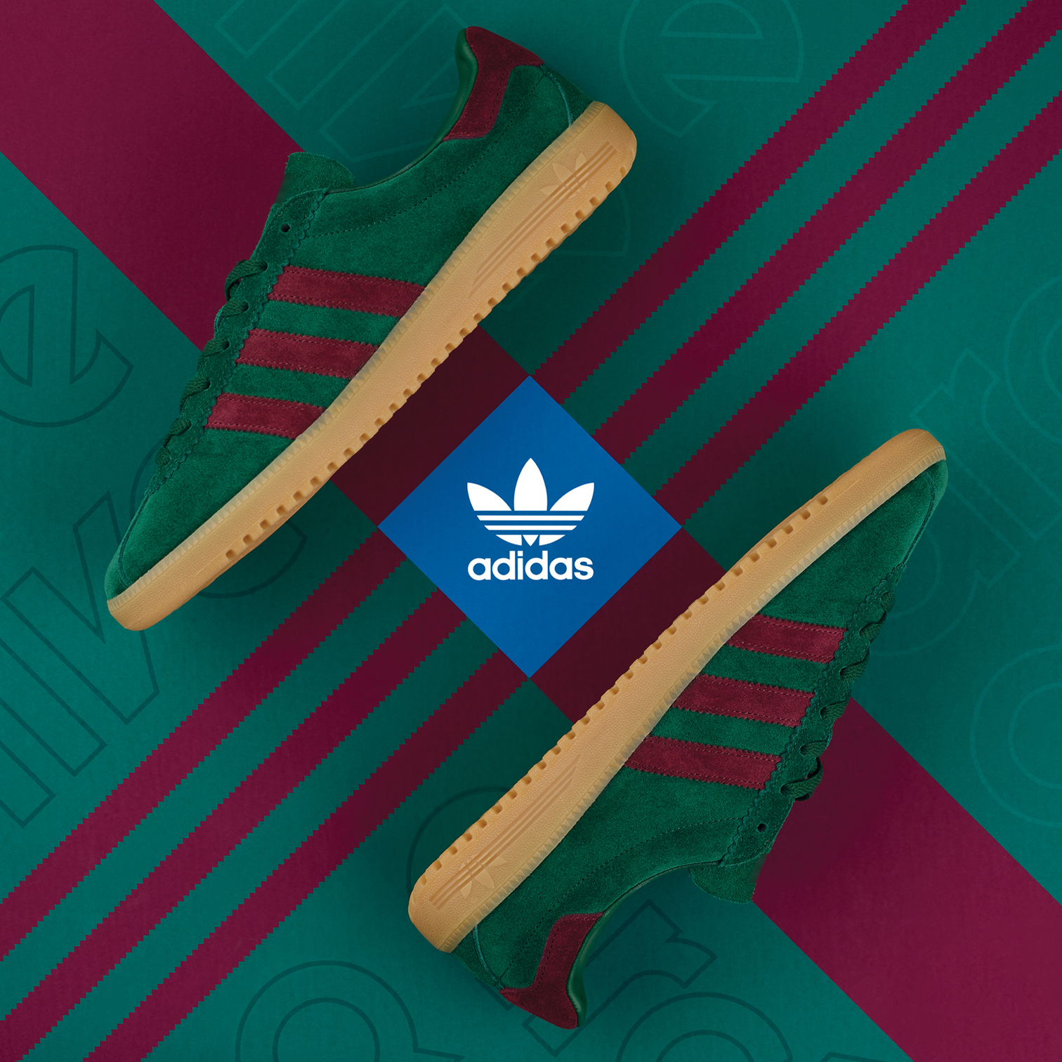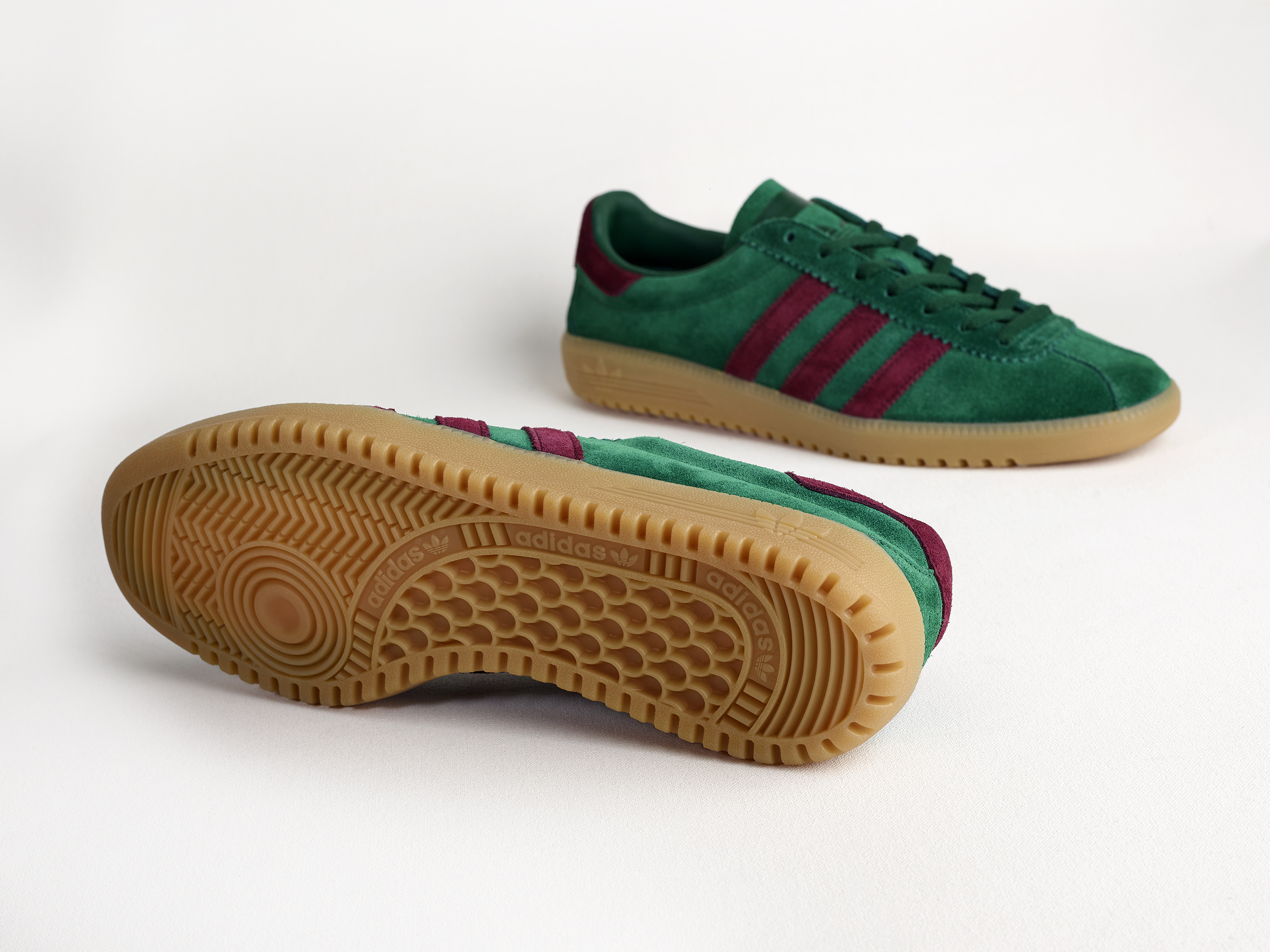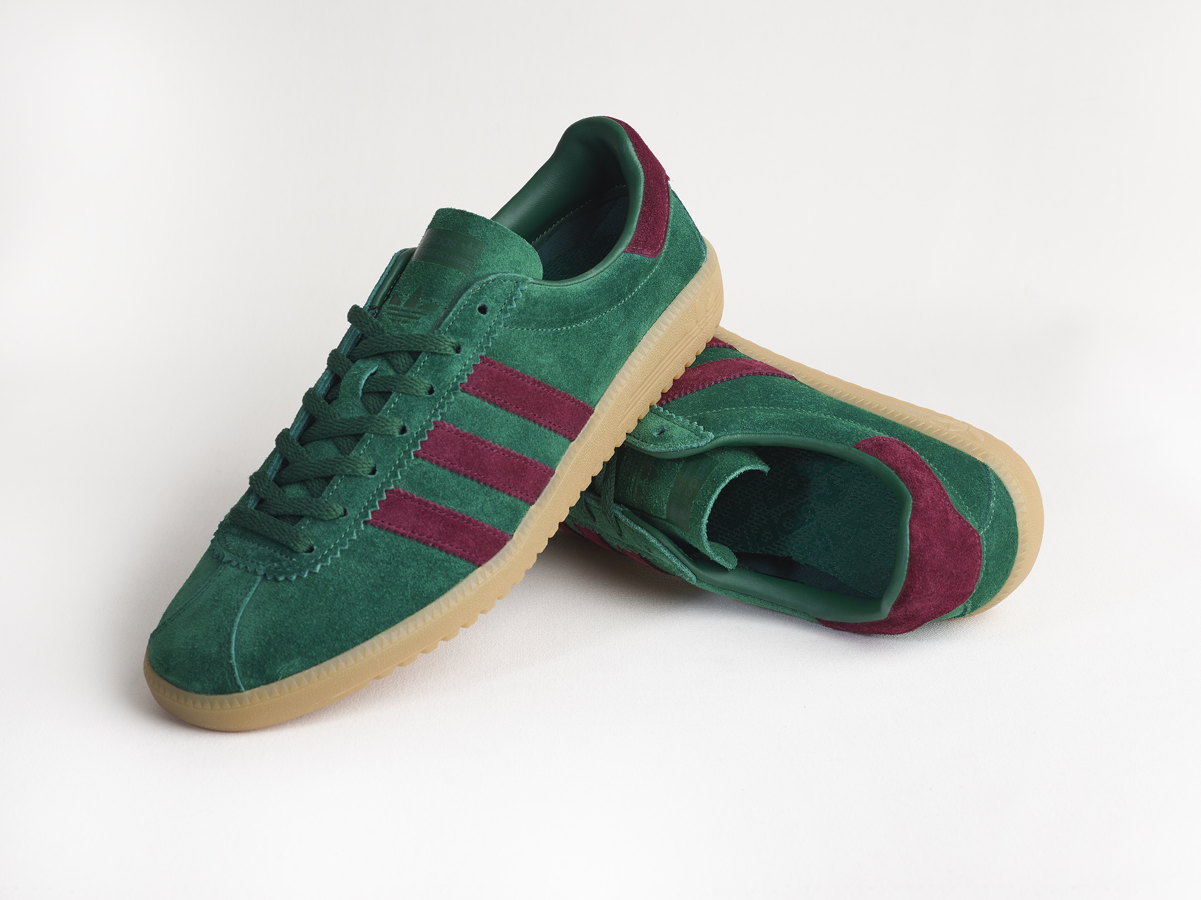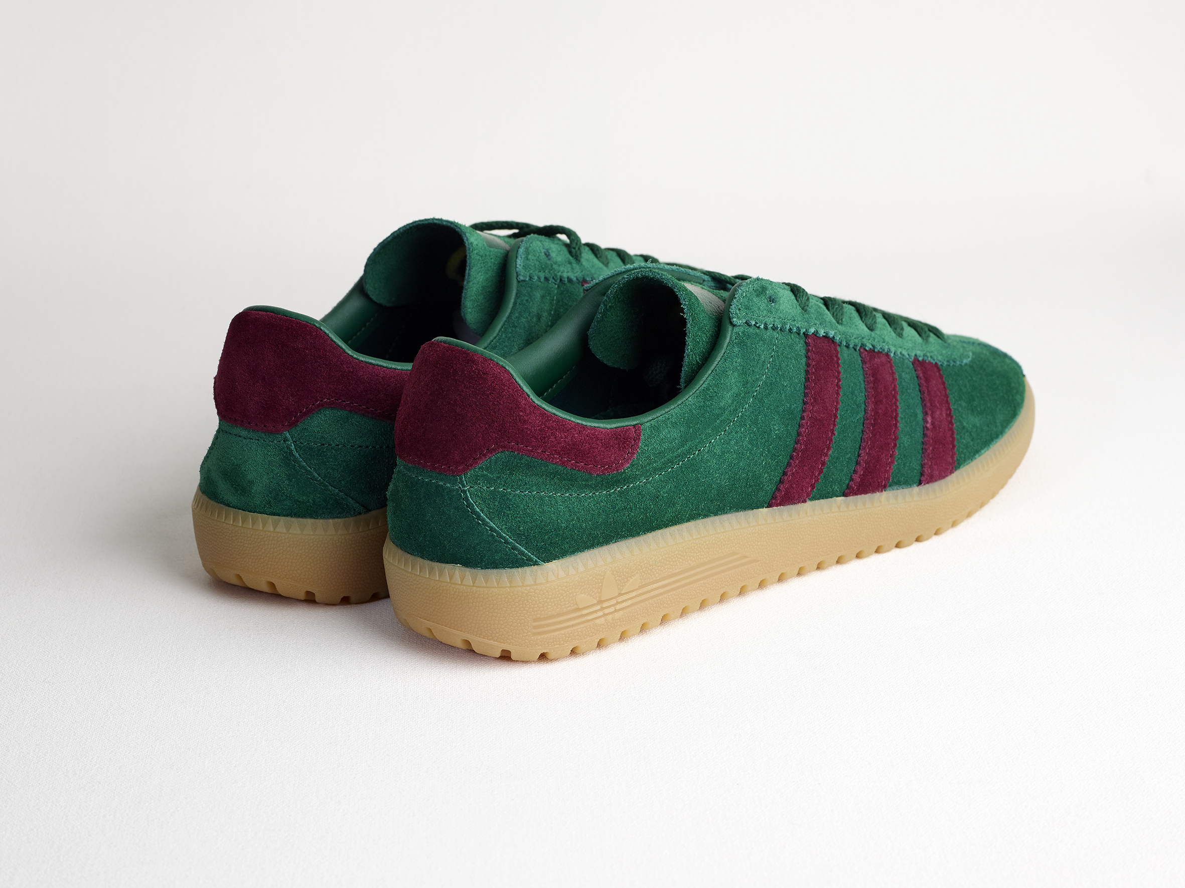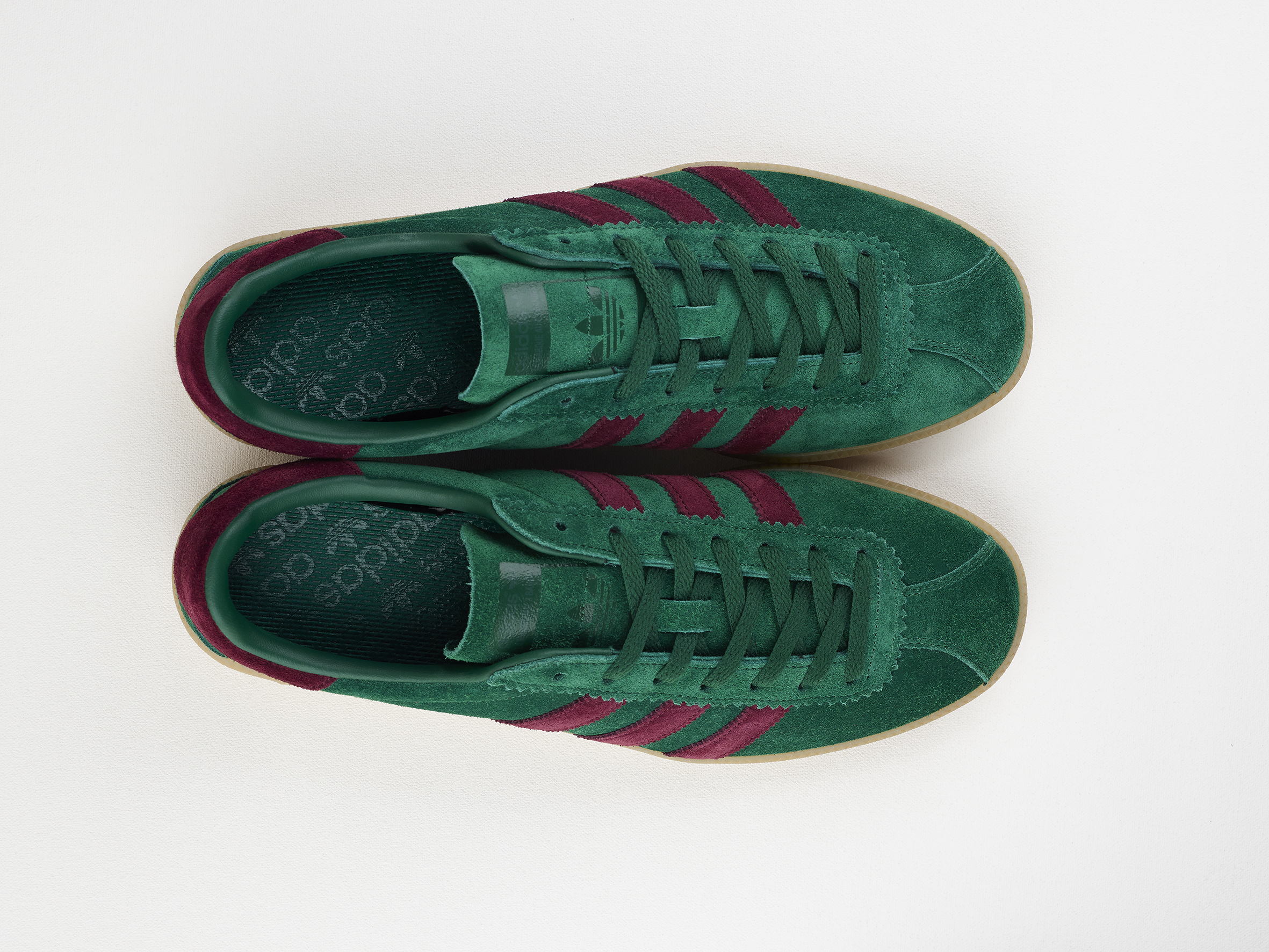 This latest colour addition to the Bermuda is a brand new rendition, making use of a deep pine green as a base layer, accentated by a rich maroon suede on the sidestripes and heeltab.