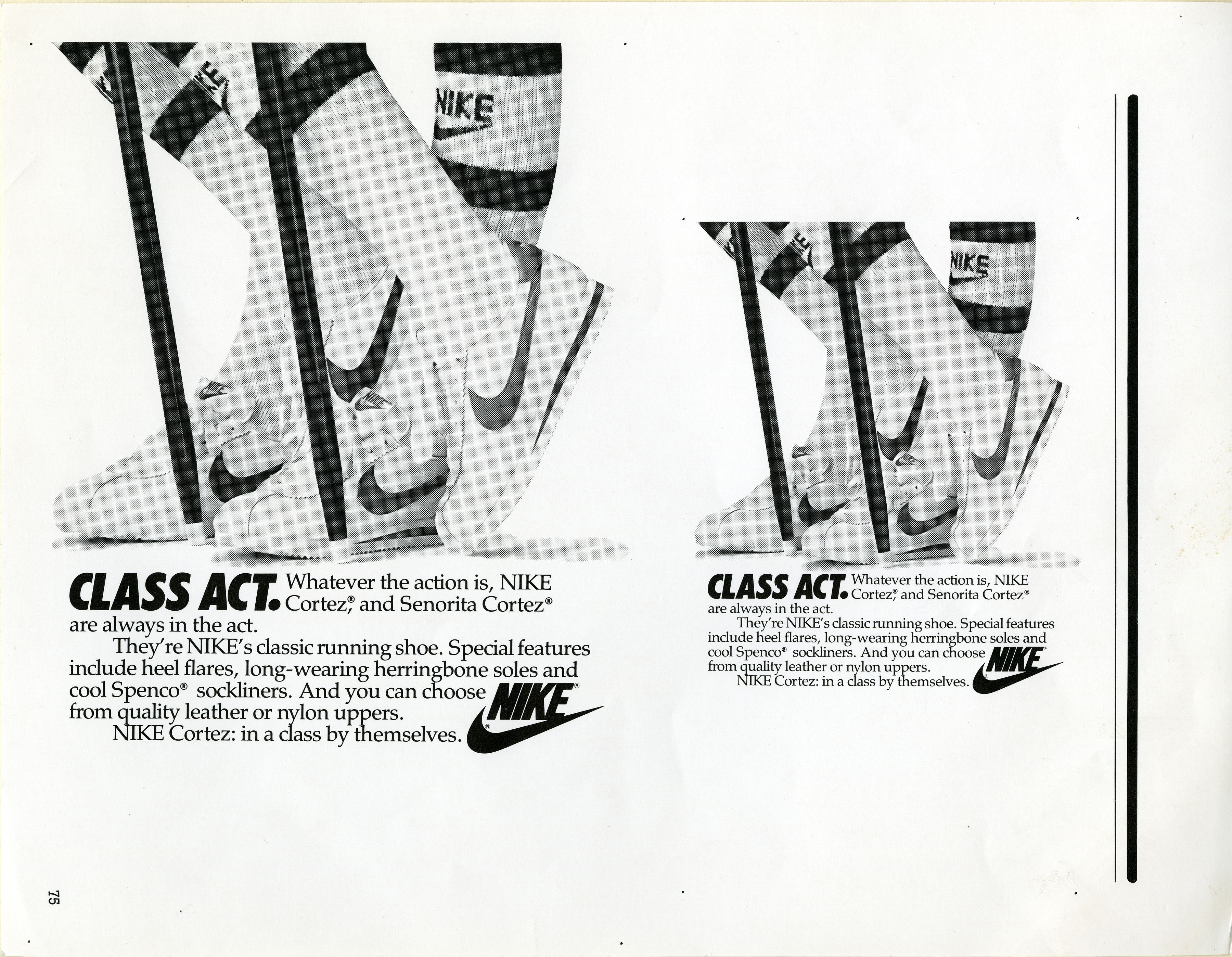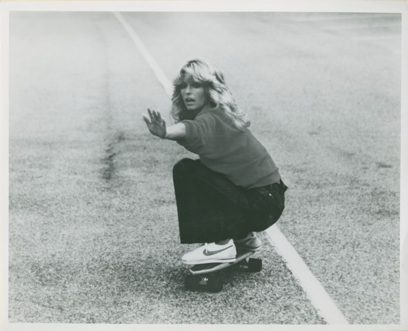 Those ’77 sales of Cortez received a jolt thanks to some unexpected media exposure. During an episode of the popular TV series Charlie’s Angels, 1970s icon Farrah Fawcett wore Cortez as she escaped a bad guy aboard a skateboard, which marked Nike’s entrance into entertainment marketing and correlated with a bump in sales.