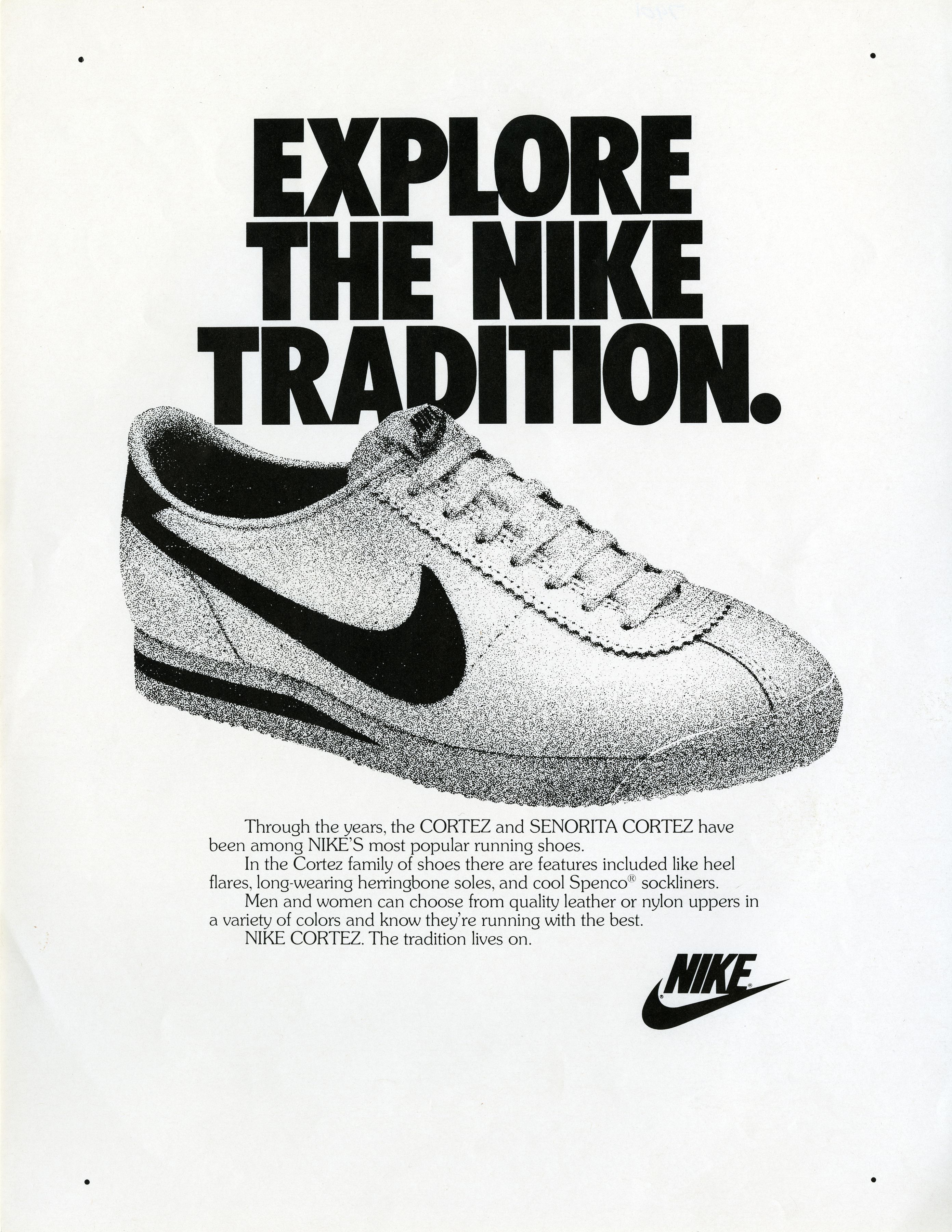 During those glory days of the Cortez story, Nike was also pushing forward, creating new shoe models with innovation even more attuned to runners’ needs. By 1977 the Nike Waffle Trainer and LD-1000 replaced Cortez and Corsair in the Top 25 training shoe list compiled by Runner’s World. Although it was no longer a favorite among runners, Cortez remained popular with general consumers. Declared the magazine: “Sadly, the reliable old shoe is outclassed—in everything but sales.”