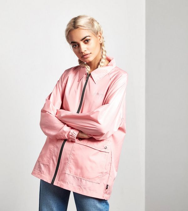 This seasonal influenced jacket from Stussy features a pink satin style construction with a pointed collar, two front flat detail pockets and long sleeves with gathered elastic cuffs for a tailored fit.