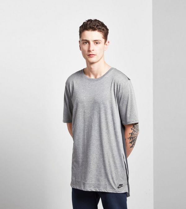 The Nike Tech Pack features pioneering apparel, constructed from a unique fabric – inspired by sports performance. The Drop Hem T-Shirt in the shade of grey features a longer line jersey construction.