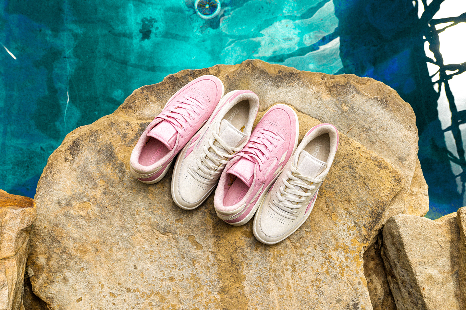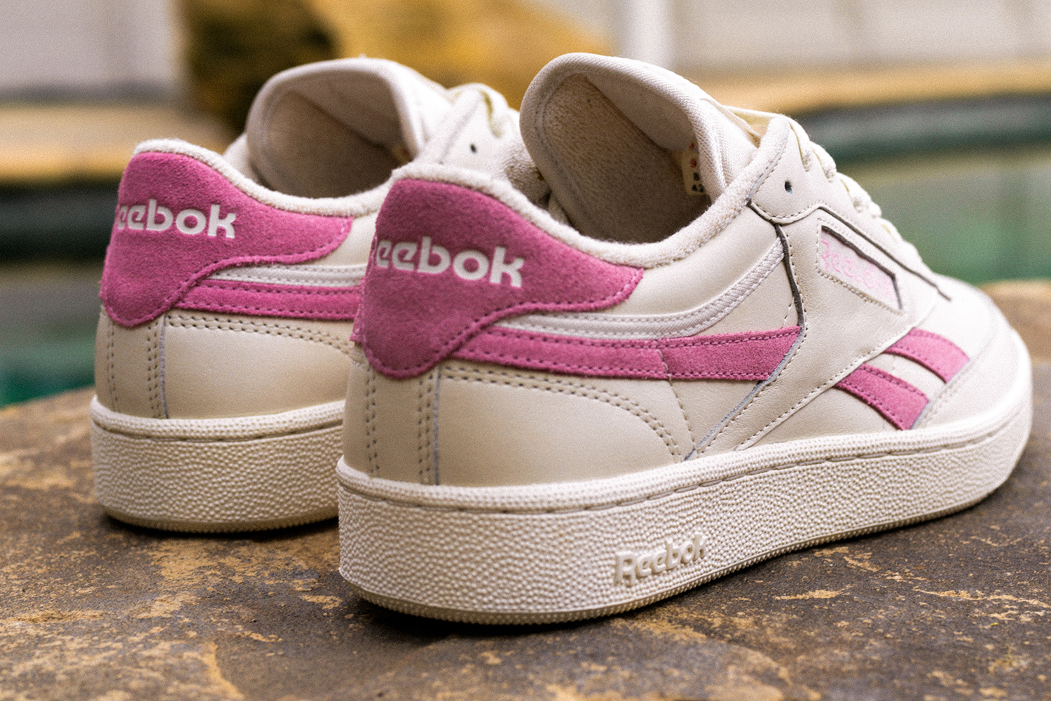 Our latest exclusive collection in partnership with Reebok Classics is formed by a duo with a split personality, with both shoes sharing the same material composition but in direct opposites. The first pink pair features a vibrant pink suede applied to the majority of the upper, with the vector branding running across the sidewall in off white leather. Flipping this combination out on the subtle second pair, the white leather takes precedence on the main body of the shoe, with pink highlighting the heel panel, vector stripes and patch branding.