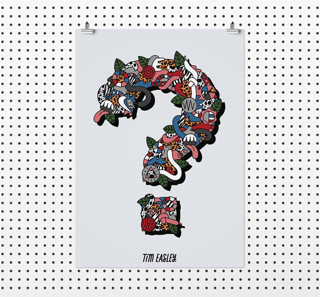 We’re continuing to expand on this project, and each week we’ll be revealing a new artists rendition of the logo. With no fixed theme this time around, the mixed-media selection of artists have created a really diverse range of artworks that demonstrate how each of their minds tick, by only having the brief of a single ‘?’ to work from.