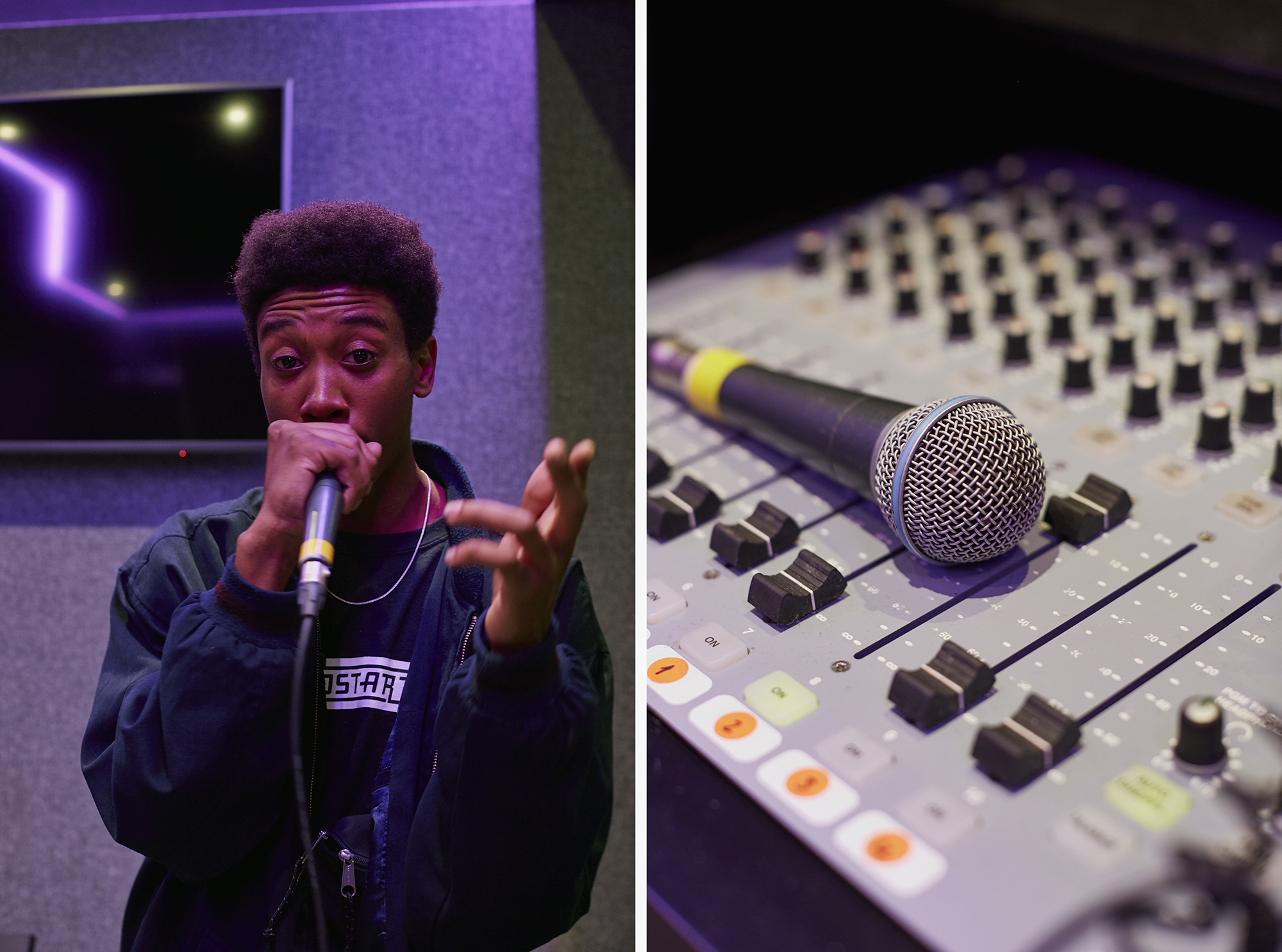 Our first destination and meeting point is his home-from-home, Radar Radio on Old Street. Tre’ is currently working on his upcoming EP, a culmination of all of the skills he’s developed by experimenting with Footwork production over the years. As we arrive, Tre’ invites us into his booked studio room for an exclusive chance to hear the first track off his debut EP, ‘Shout Out My Bros’ – an amalgamation of footwork beats and hip-hop MC’ing. After the track finishes, Tre’ heads straight into the mix; a set he’s working on for a gig the following day.