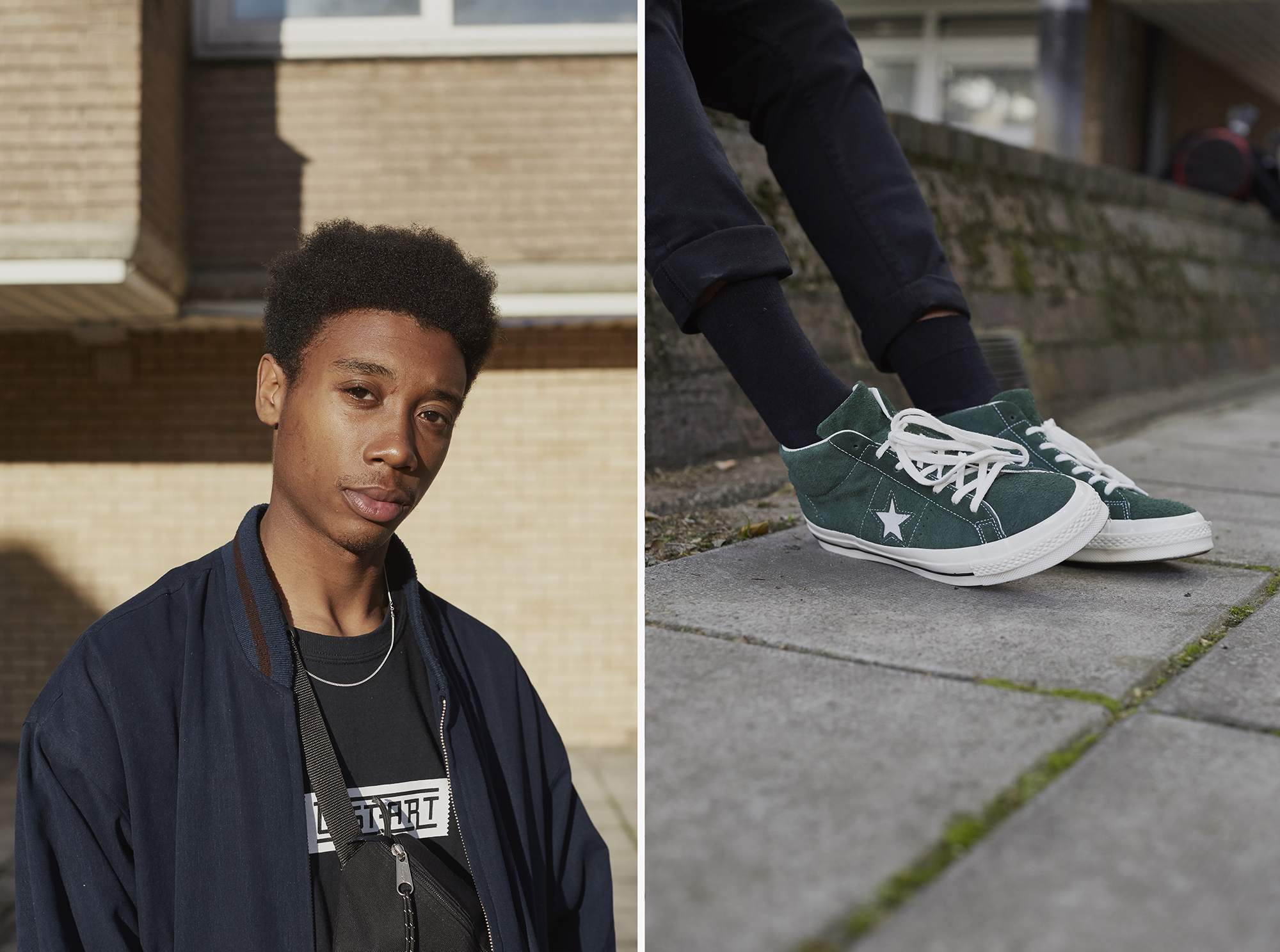 Next up in our short style story concentrating on the Converse One Star Mid is Tre’bore, a 22-year-old, London based beat-maker, DJ and multi faceted-creative. Tre’bore is a member of Fly High Society and curator of Rooftop collective, playing alongside the likes of Kutmah, Blue Daisy and Tim Parker, as well as featuring on London radio stations Radar and NTS. For such a young upstart in an ever-changing industry, Tre’s hungry to harness as many skills as possible to use as an outlet for creativity, and a way for dealing with personal issues.