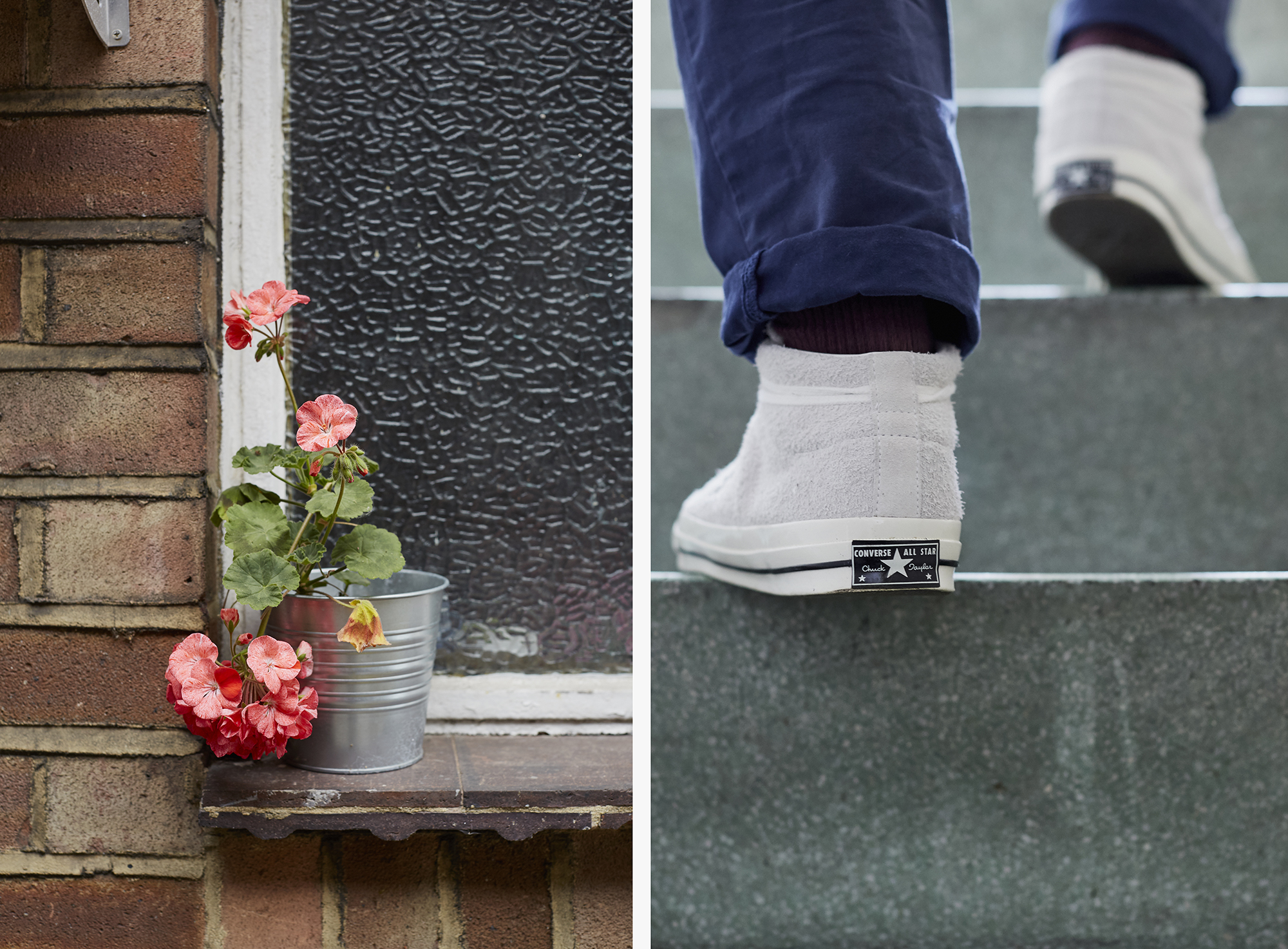 Concluding our mini-series based around the Converse One Star Mid is Mike Holmes, designer and creator of The Longshot Experiment – a bespoke headwear company based in Manchester. Mike works out of his home/studio in Flixton, creating limited runs of handmade hats and apparel that draw influence from his wide range of interests. A deep interest in the worlds of music, graffiti and skateboarding inform his products, taking a sprinkling of the magic found within each culture and adding his own viewpoint into the mix. An amalgamation of reference points that have helped him form a following for his brand, with items selling out with pace as soon as they’re completed by his steady hand. We visited Mike’s studio for the day to see what he gets up to week to week, in preparation for a new seasons line to drop.