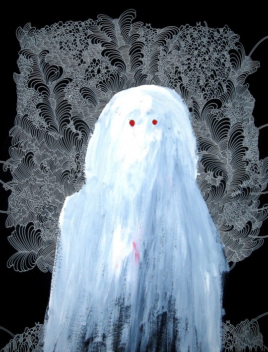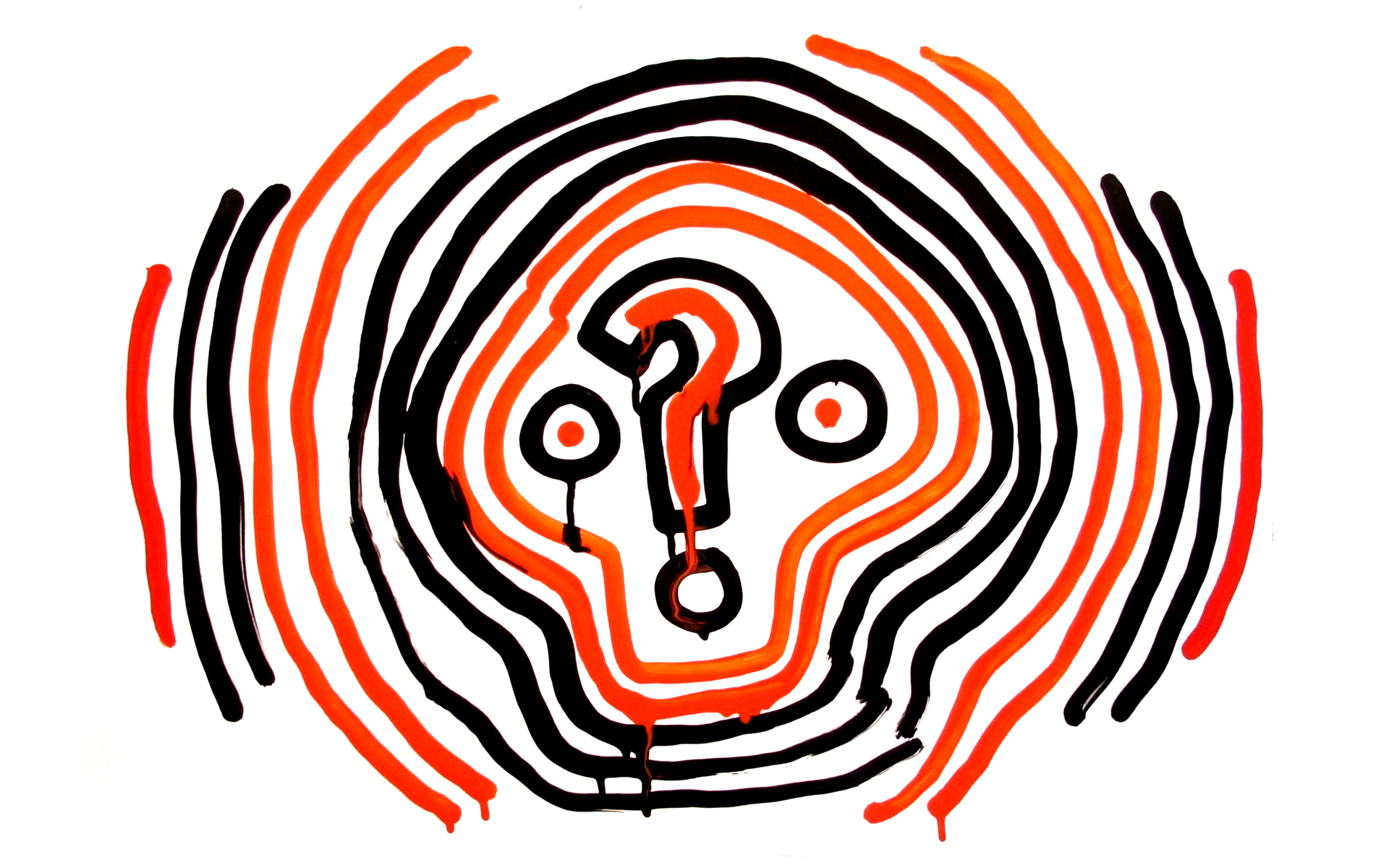 The size? piece is in a similar style I used for an exhibition called ‘Stupid Nature’ and the cover of Rival Consoles album Howl. The image is draw large in a Krink ink pen which is designed to drip. I started my drawing with the question mark and have the lines come out from that. I noticed when I did this the shape that it made resembled a skull/head. With the edition of two circles for eyes the image felt finished. It seemed to resonate with me my feelings about the times we are living in. Everything is so uncertain and crazy that this image seemed to sum up that for me.
