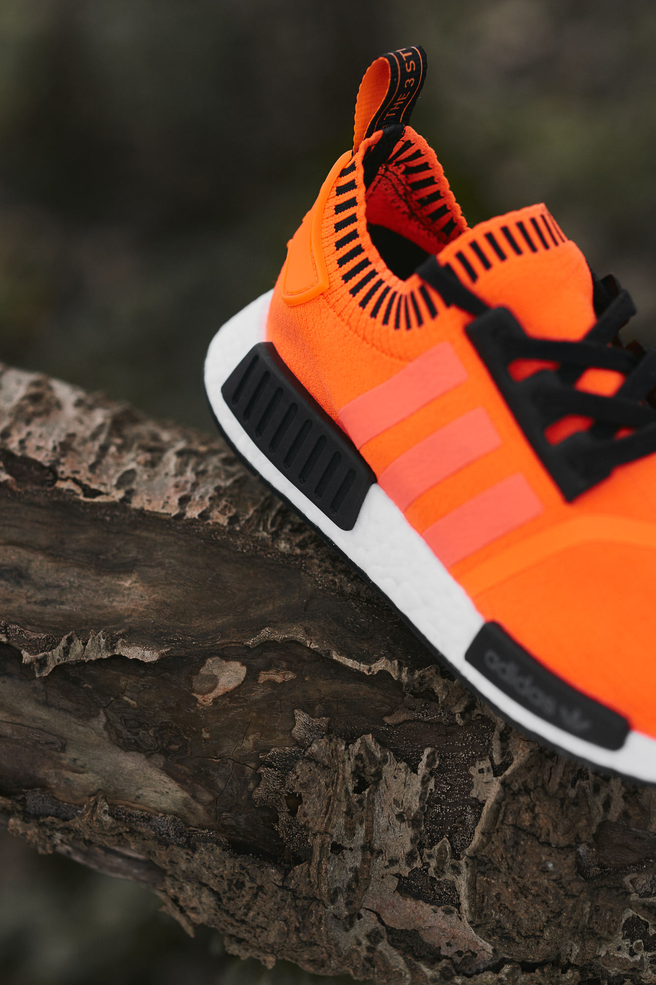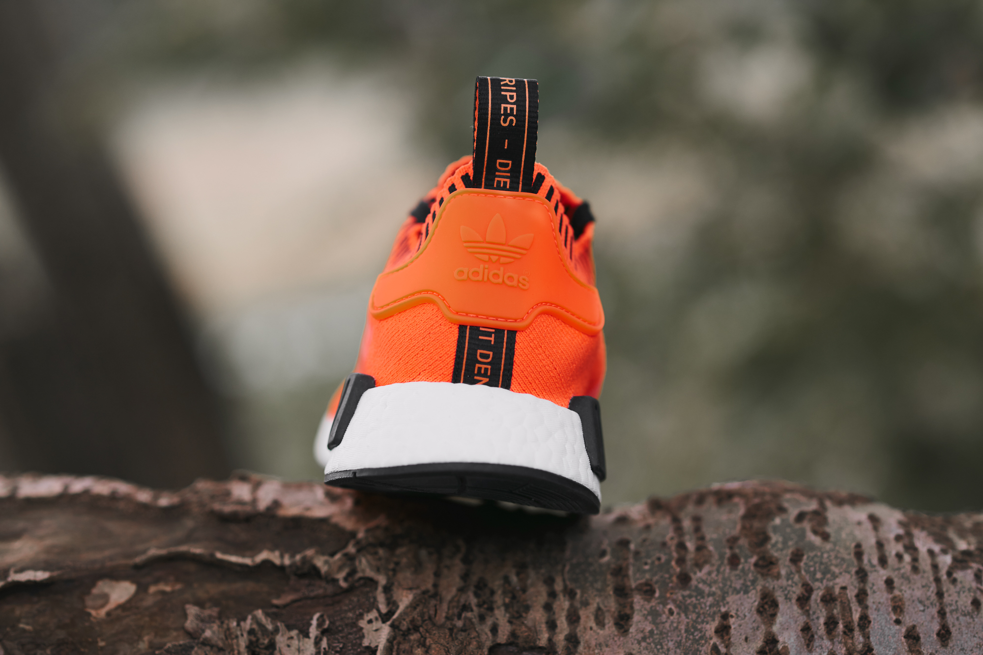 The next installment, following on from last months EQT Cushion ADV, is the vibrant ‘Orange Noise’ colourway. Sitting within the ‘Invisible’ theme, despite it’s almost neon hue, the blazing orange used on this release is actually invisible to deer. Their eyesight can’t comprehend the hue, and to them it appears instead as a murky brown or grey. The Primeknit upper on this size? Exclusive NMD_R1 makes use of the eye-watering orange, accented by black detailing on the heeltab and elasticated cuff. The signature plugs inspired by vintage adidas Originals products are coloured black, with matching black branding sitting on top.
