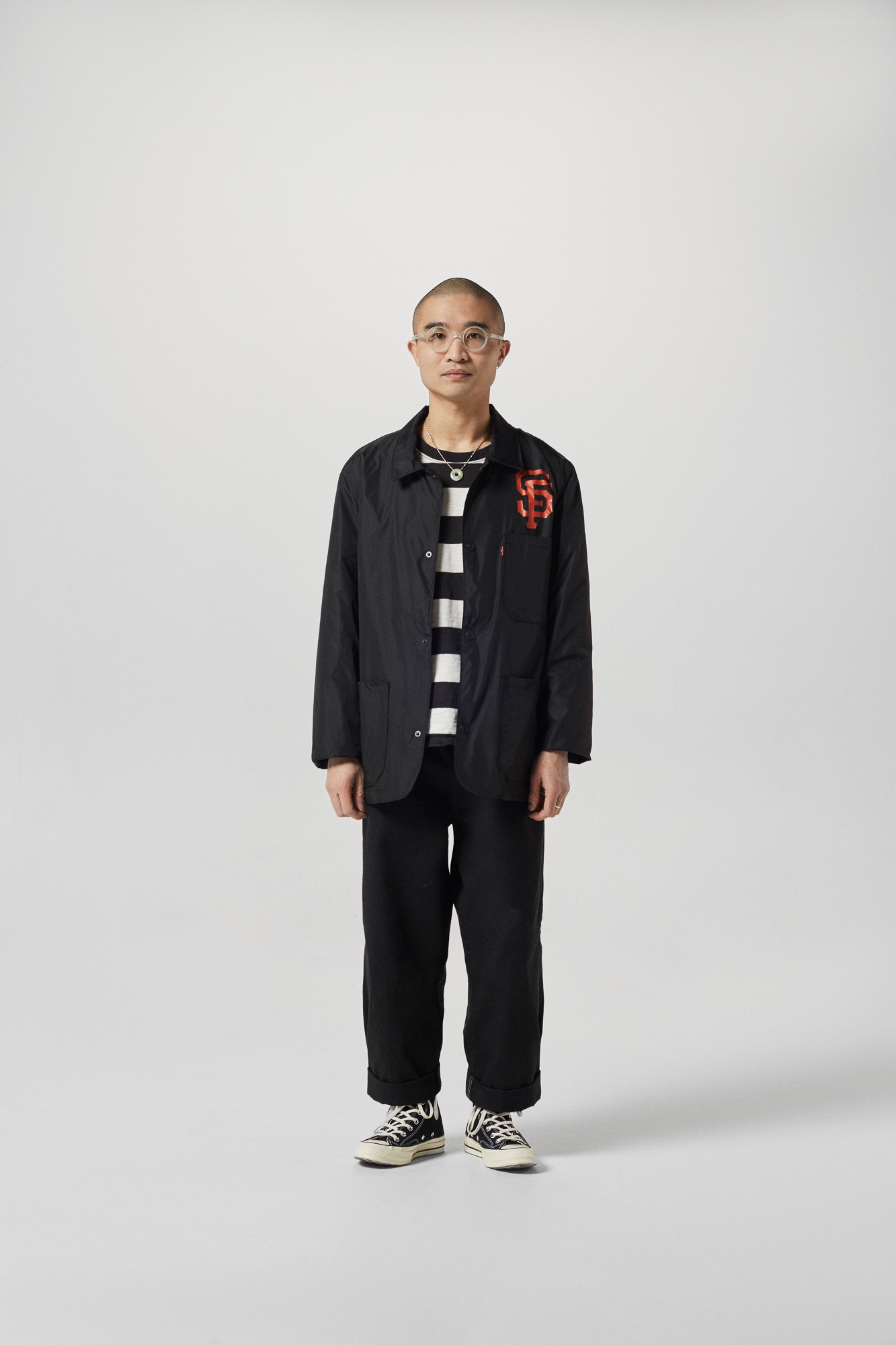 The Club Coat takes it’s silhouette from an Engineers Jacket taken straight from the Levi’s archive, reimagined in a ‘coach’ style Nylon similar to what you might traditionally see sitting on the bench in the dugouts while waiting to step up to the plate.