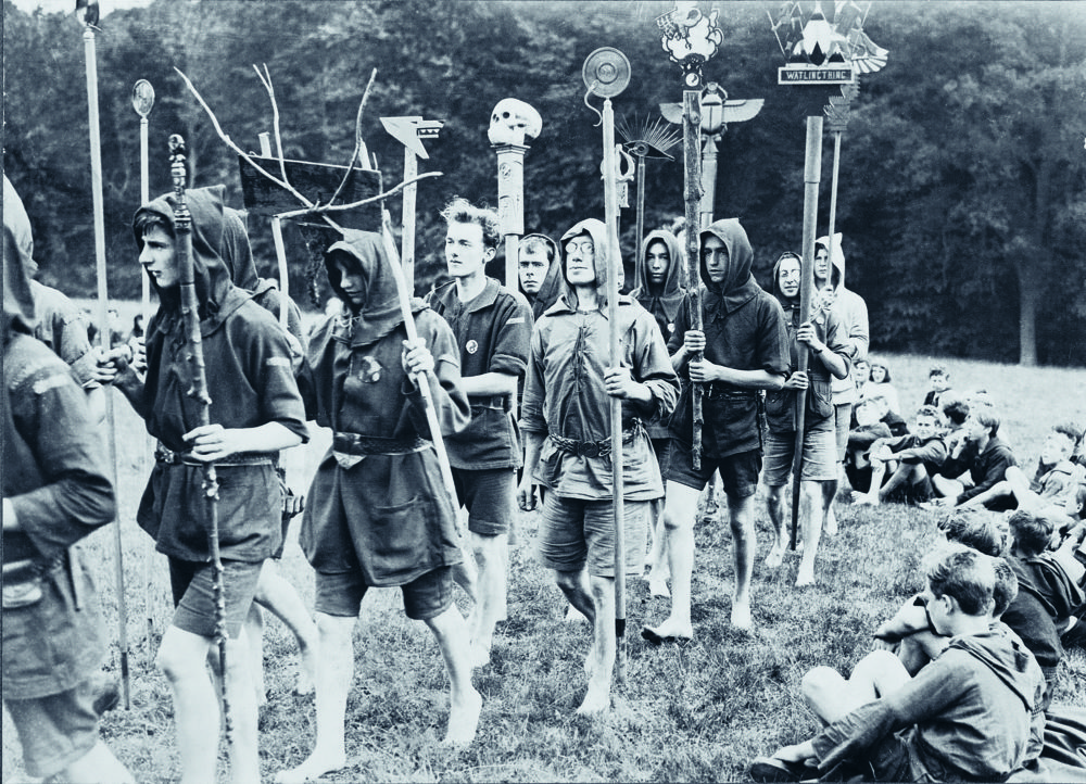Fortune tellers, foreigners, scouts or priests? The hooded hikers arranged under cryptic banners and marching in triangular clusters caused much consternation among those who passed them in the English countryside in the 1920s. WTF? This was a reaction they relished. From their strange name to their strange attire, the Kindred of the Kibbo Kift cultivated peculiarity and revelled in ridiculousness. As ‘a youth movement for all ages’ that combined elements of mystical religion, political action and avant-garde art, the thousand-or-so members deliberately confused categories.