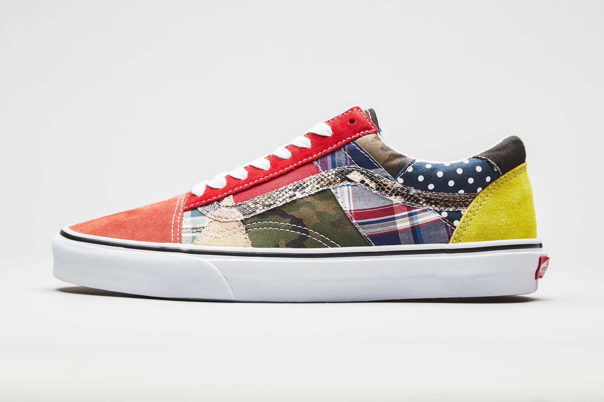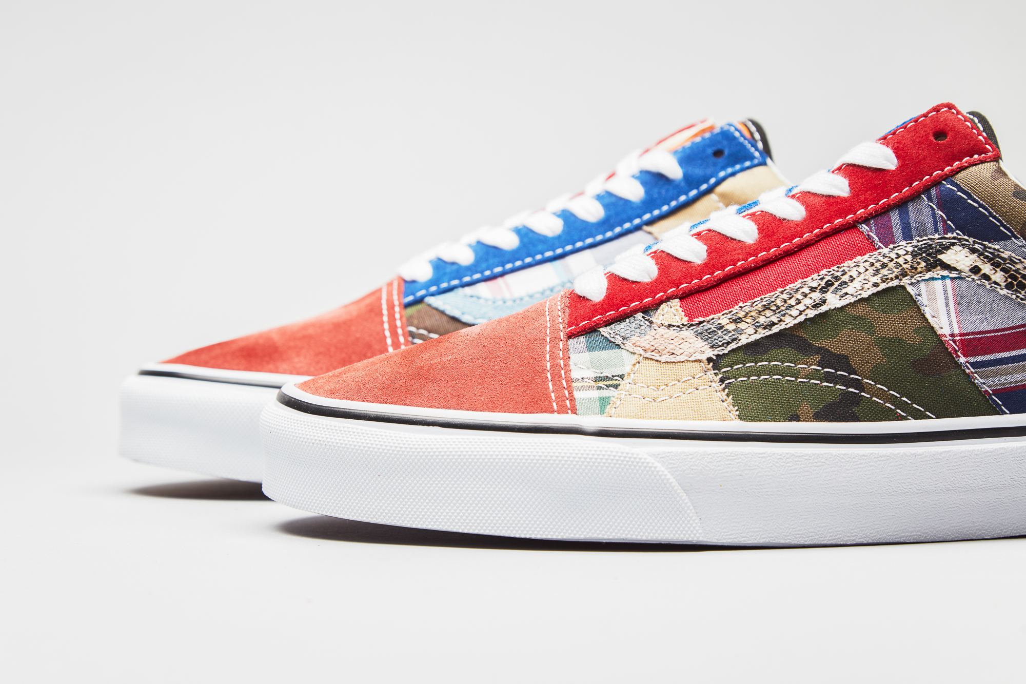 Shape wise we had the opportunity to work on the Old Skool once again, one of the most iconic shapes found within the brands archive, and a style that has attained a level of timelessness having spent over 60 years in the spotlight. The upper comprises of 15 different patterned and textured materials that are scattered across the pair, meaning both the left and right shoes are completely different. Adding more to the individual nature of each shoe, there will in turn be variations on the plaid, camo and spotted panels.