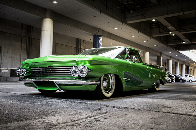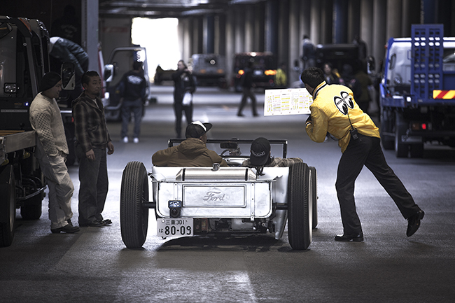 The low December sun has burst above the Pacific, off the coast of Yokohama, on the southern end of Tokyo Bay. Yellow-blue light is streaming into the loading bay of the Pacifico Hall convention centre. This cavernous concrete and tarmac space, which yesterday was populated by the Coin-Operated Laundry Convention, is this morning replete with the candy apple metal flaked tangerine dream of Americana. A slick-haired Californian on a skinny knucklehead twists the throttle in a cloud of fumes and decibels. A 30-something Tokyo graphic designer in a Deck Jacket and leather lid gives it the gangster lean in ’32 Ford ‘Deuce’ Roadster rubbed down to the primer, rocking skinny sand racing rubber. A heavily be-quiffed rocker from Nagano slips his 59 Impala into gear and flames burst from the pipes as heavy as the pinlined versions on his paint job. Welcome to the 26th Mooneyes Hot Rod and Custom Show.