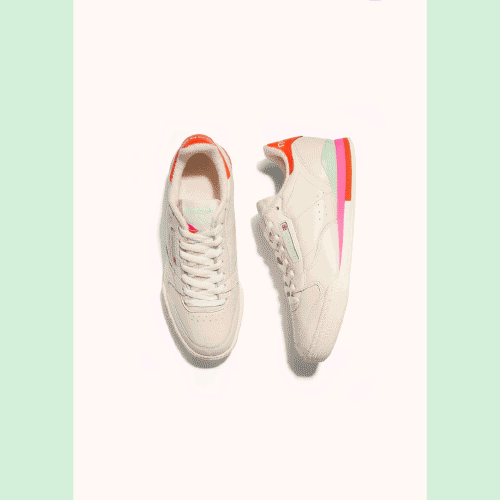 The upper of the Reebok Californian Summer ’84 comprises of a traditional cream ‘glove’ leather stretching across every panel, while bright pink, orange and mint green hits have been layered into the midsole unit and heel counter. The materials switch up on the inside of the shoe, with a traditional plush toweling lining featured on the sockliner and insole.