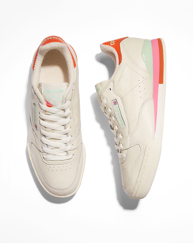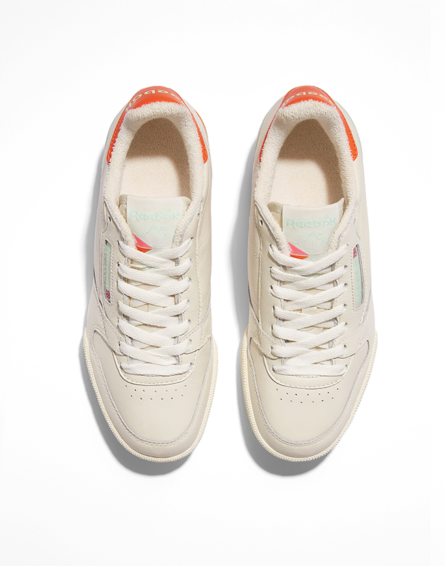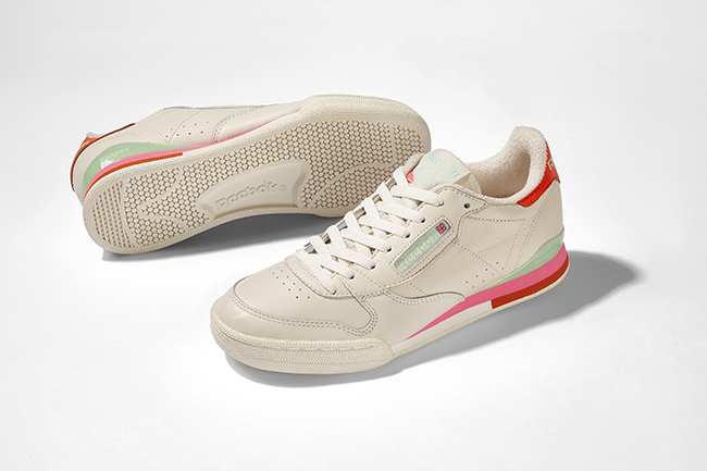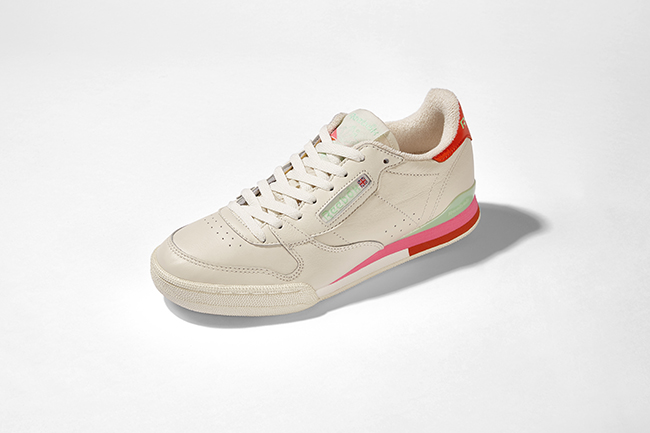 The upper of the Reebok Californian Summer ’84 comprises of a traditional cream ‘glove’ leather stretching across every panel, while bright pink, orange and mint green hits have been layered into the midsole unit and heel counter. The materials switch up on the inside of the shoe, with a traditional plush toweling lining featured on the sockliner and insole.