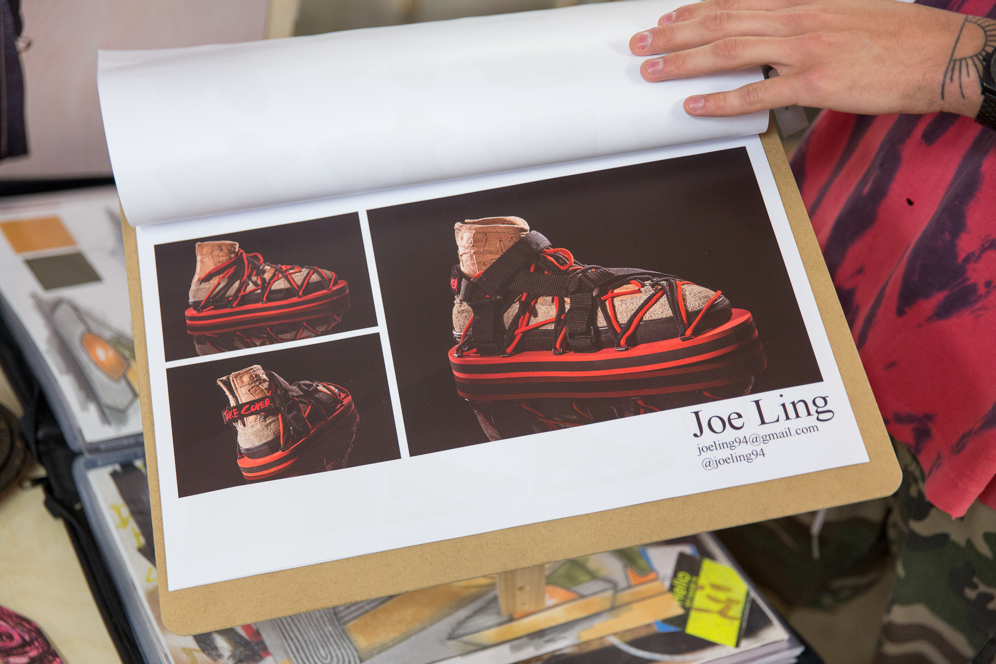 We also spoke to Joe Ling, a footwear design student at DeMontfort University, whose work took inspiration from his love of skateboarding and the layered storytelling element of flyposting.