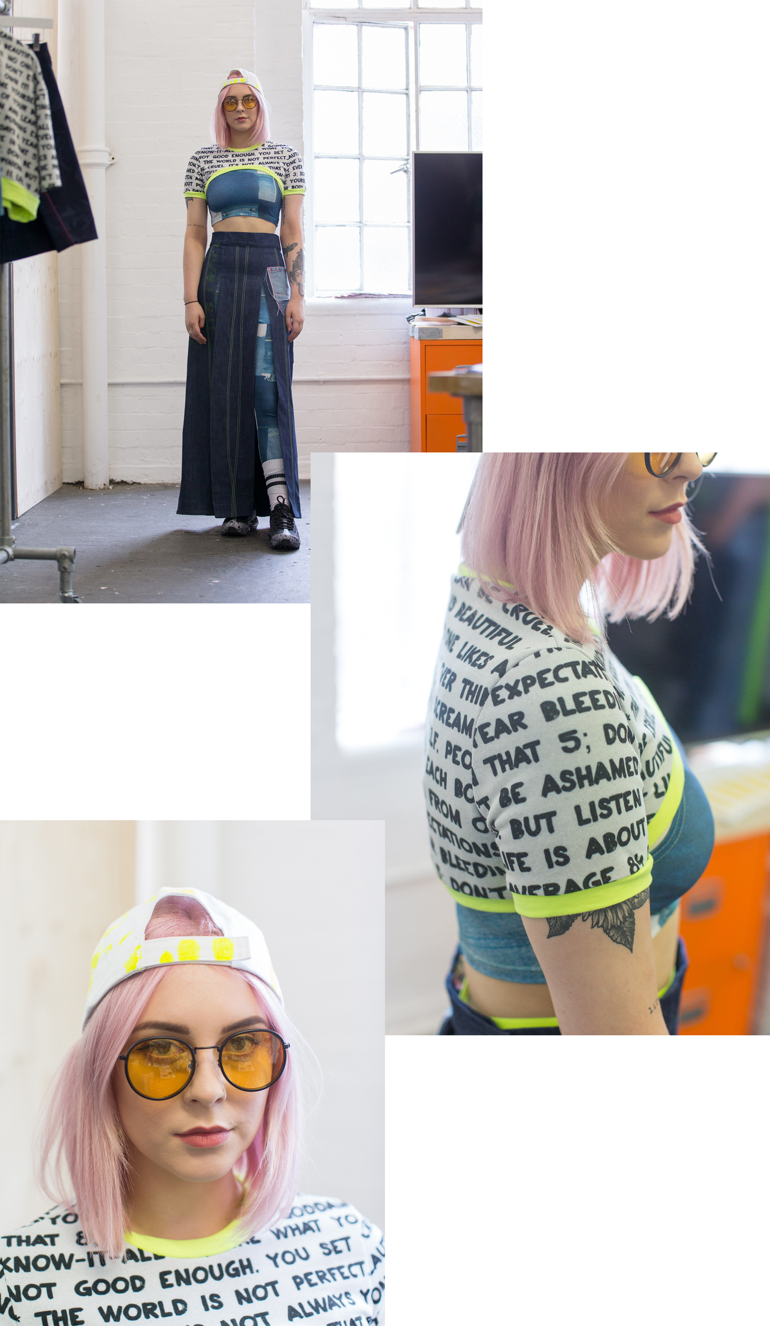 As well as the handmade, patchwork element to her work, there are also digitally printed renditions of the texture which were applied to elasticated materials to form the structure of croptop’s.