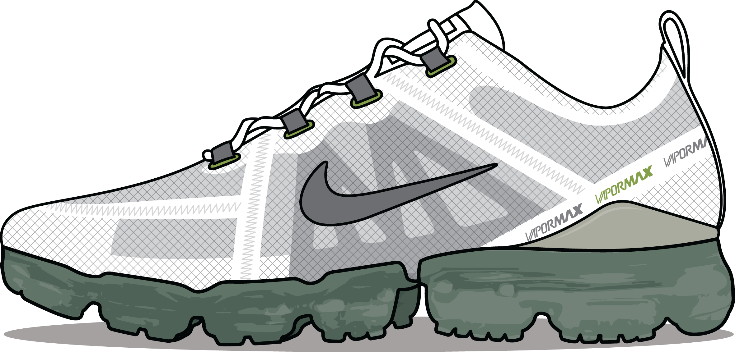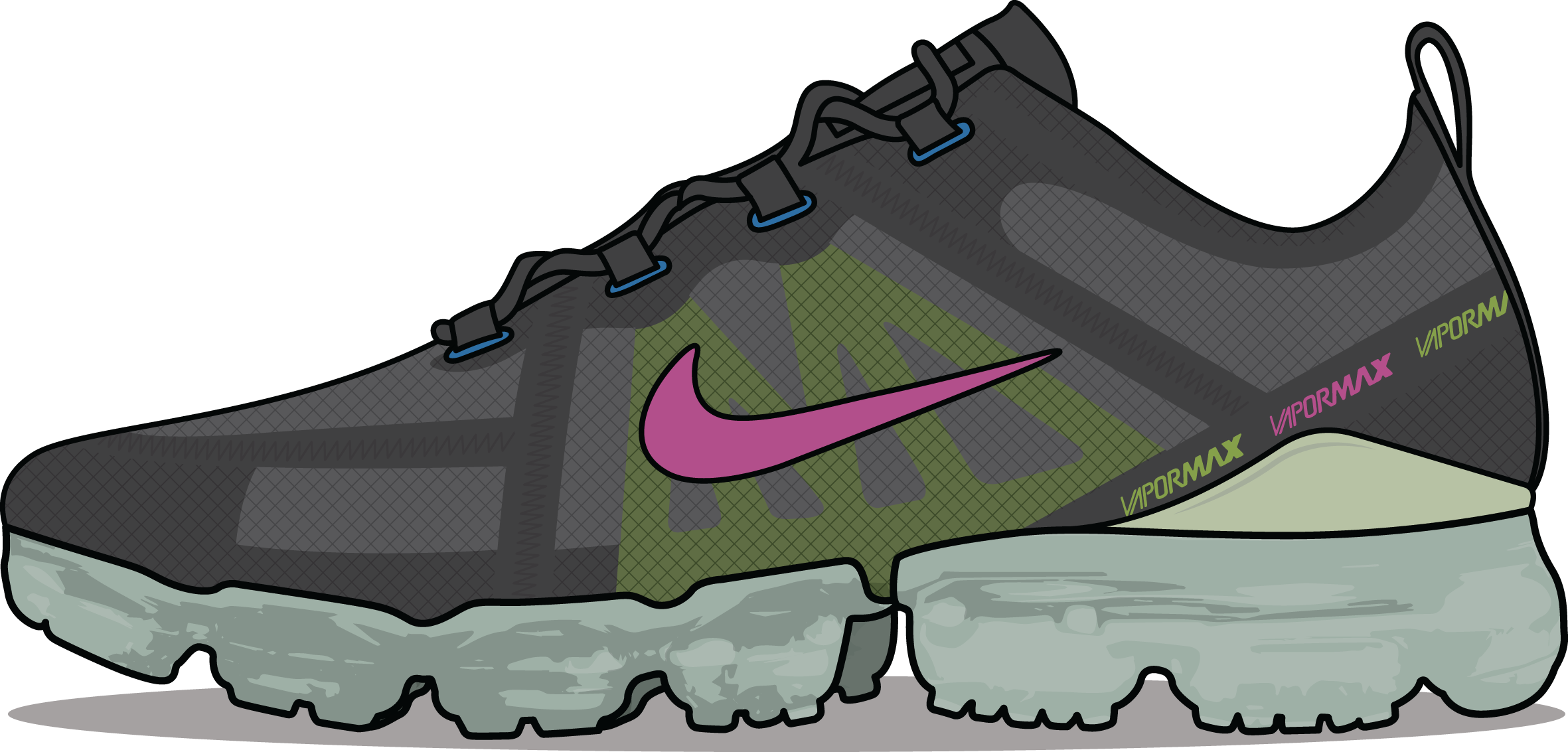 Fast-forward thirty years on from the release of the first ever Air Max model, the VaporMax aimed to stand apart from its predecessors. The revolutionary pair was formed with the idea of using less air, more efficiently. With the aid of pressure maps on the foot, Nike’s designers identified the precise amount of Air needed to support a runner’s step. Building on that technology, the team formed a tread patterned outsole which performed like small pistons; with each of its lugs being pushed into the Air unit and releasing at step-off for that energy-responsive, springy bounce.