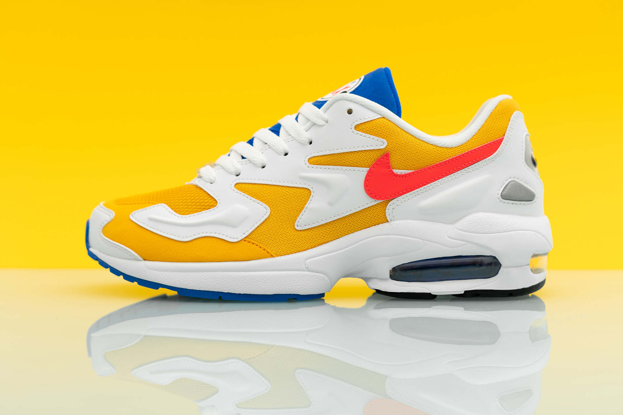 In the ’90s, Air was viewed as the antidote to preventing runners from being weighed down by their midsoles. More Air would mean less sole which would subsequently mean less weight – but the Air Max2 managed to disprove this theory by turning its sole unit into a supportive asset. Designers replaced the single-density foam with the brand’s innovative Phylon – a cushioning material made from EVA pellets which Nike compressed, expanded with heat and then moulded into a supremely lightweight yet supportive midsole.