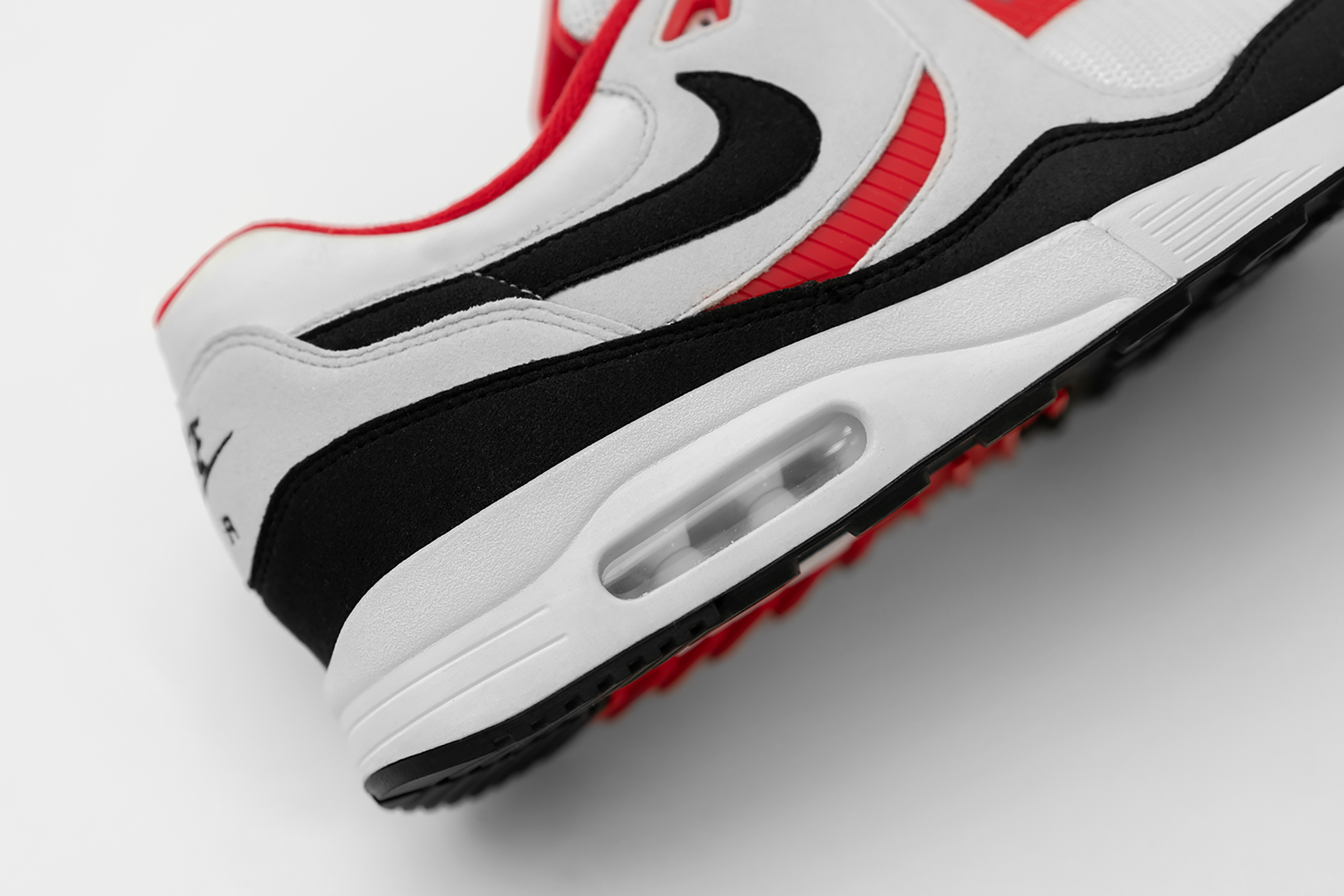 Screaming with throwback appeal, Nike delivers a classic Air Max design relevant for the present day. Arriving in an OG colourway, the Max Light’s upper boasts a base of white breathable mesh and light grey suede, overlaid by contrasting black panels to the mudguard and side panel Swooshing. Vibrant bursts of colour arrive on the ‘Sport red’ synthetic