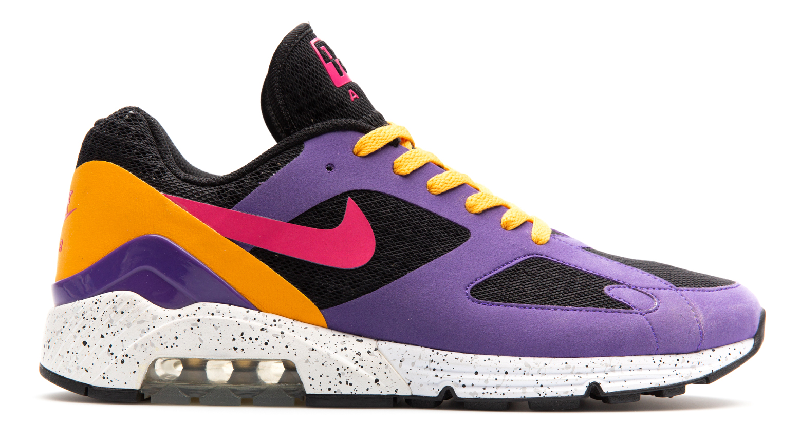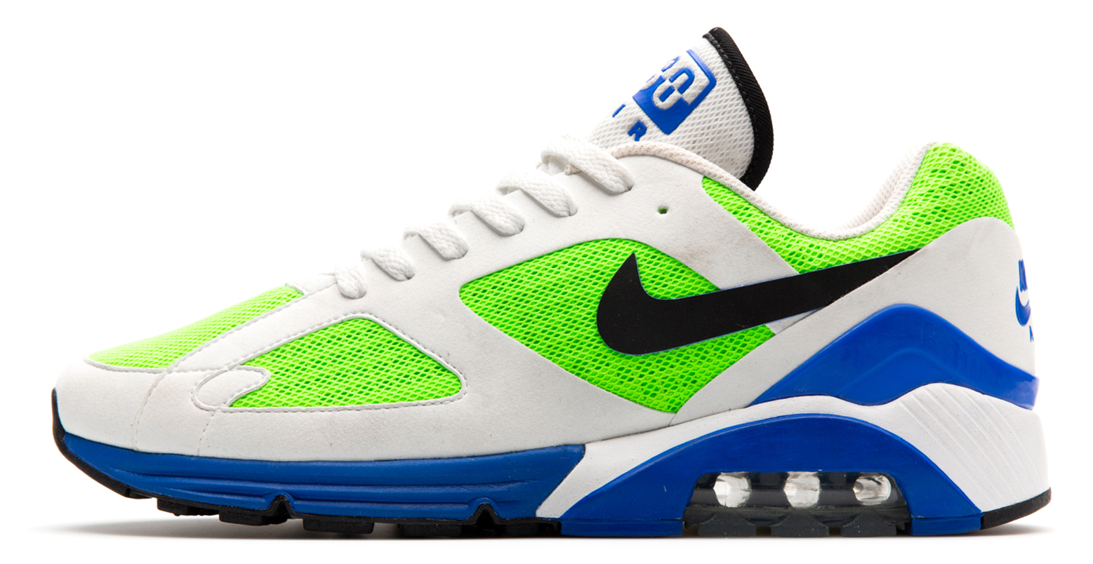 The series boasted the Air Mariah, Lunar Racer, Blazer Mid, Lunar 18 and Air Stab. The two Lunar 180 releases – which were designed for different types of terrain – featured two colourways from the world of running. The first took the palette from 1991’s Air Huarache ‘Scream Green’: the original and most recognisable of all foot-hugging renditions, we transferred the vibrant green and blue combination from the neoprene booty and placed it onto the newly developed ‘Torch’ mesh sections of the Lunar 180. As the name suggests, the midsole tooling underwent a transformation (with size? being the first to debut it) with the addition of Nike’s new Lunarlon cushioning system. Comprised of several layers of foam, its lived on in many of Nike greatest running shoes since.