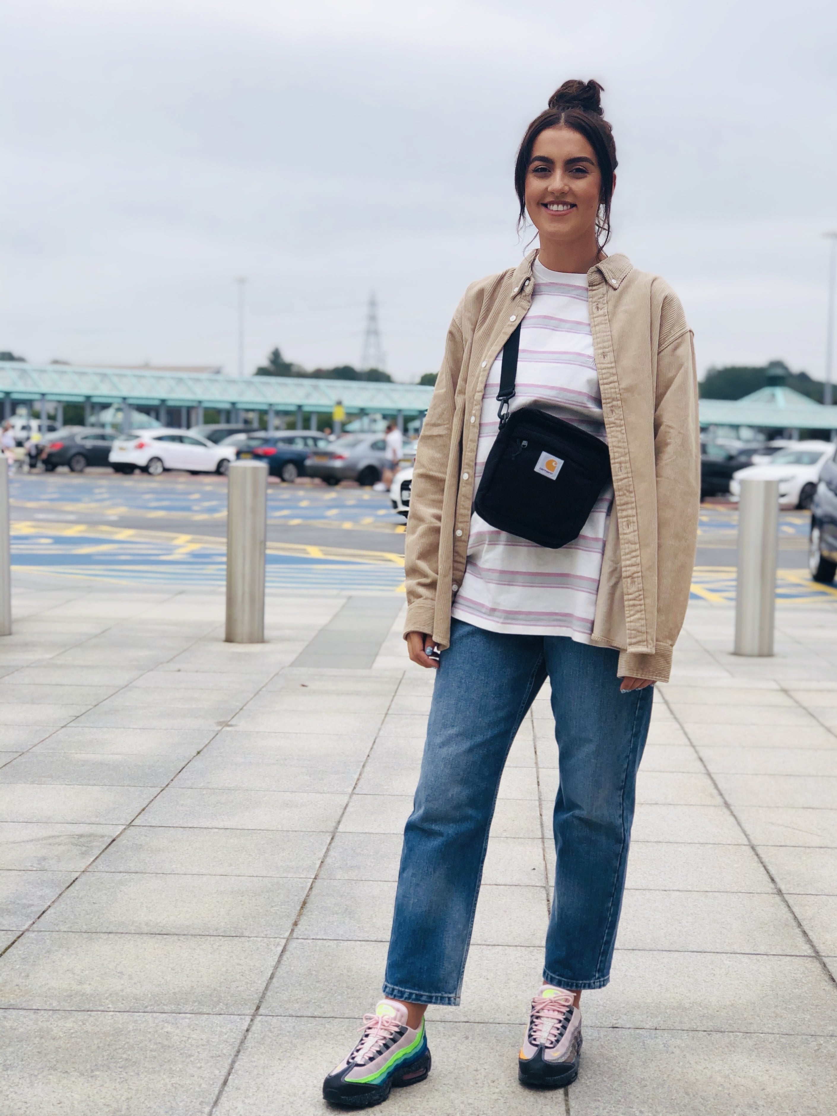 “In terms of accessories, I find that a crossbody bag is simple but effective, and completes every kind of outfit. I always sway towards neutral tones but often use my footwear choice to add a pop of colour, with the Air Max 95 ’20 for 20′ being a great example as this is both subtle but vibrant in equal measures.”