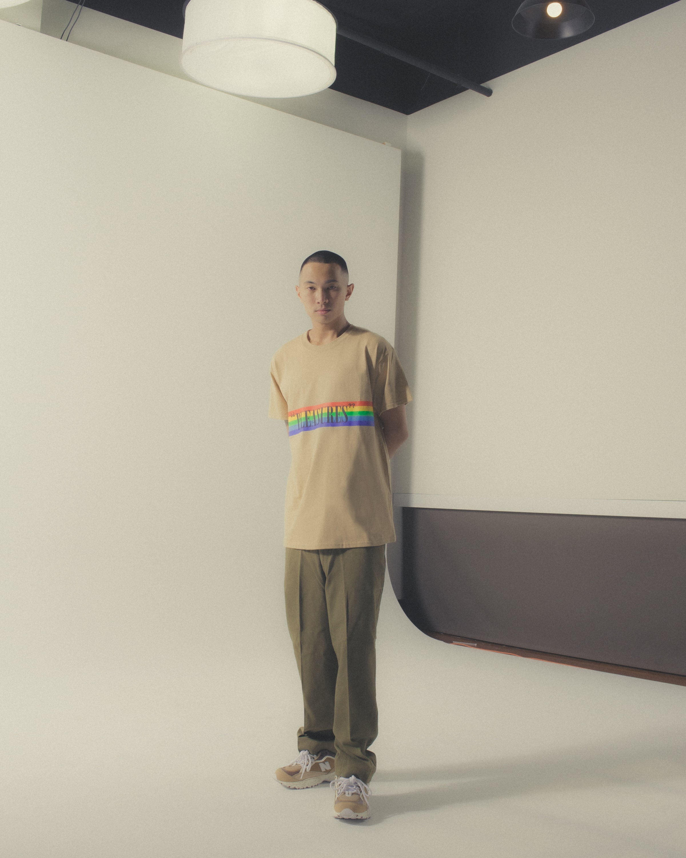 We’ve also teamed up to create two sets of striking short-sleeved cotton tees, one with a muscle graphic to the front – typical of PLEASURES subversive style – while the other ‘Roads Logo’ tees boast rainbow co-branding across the centre for a vibrant aesthetic. You won’t want to miss this.