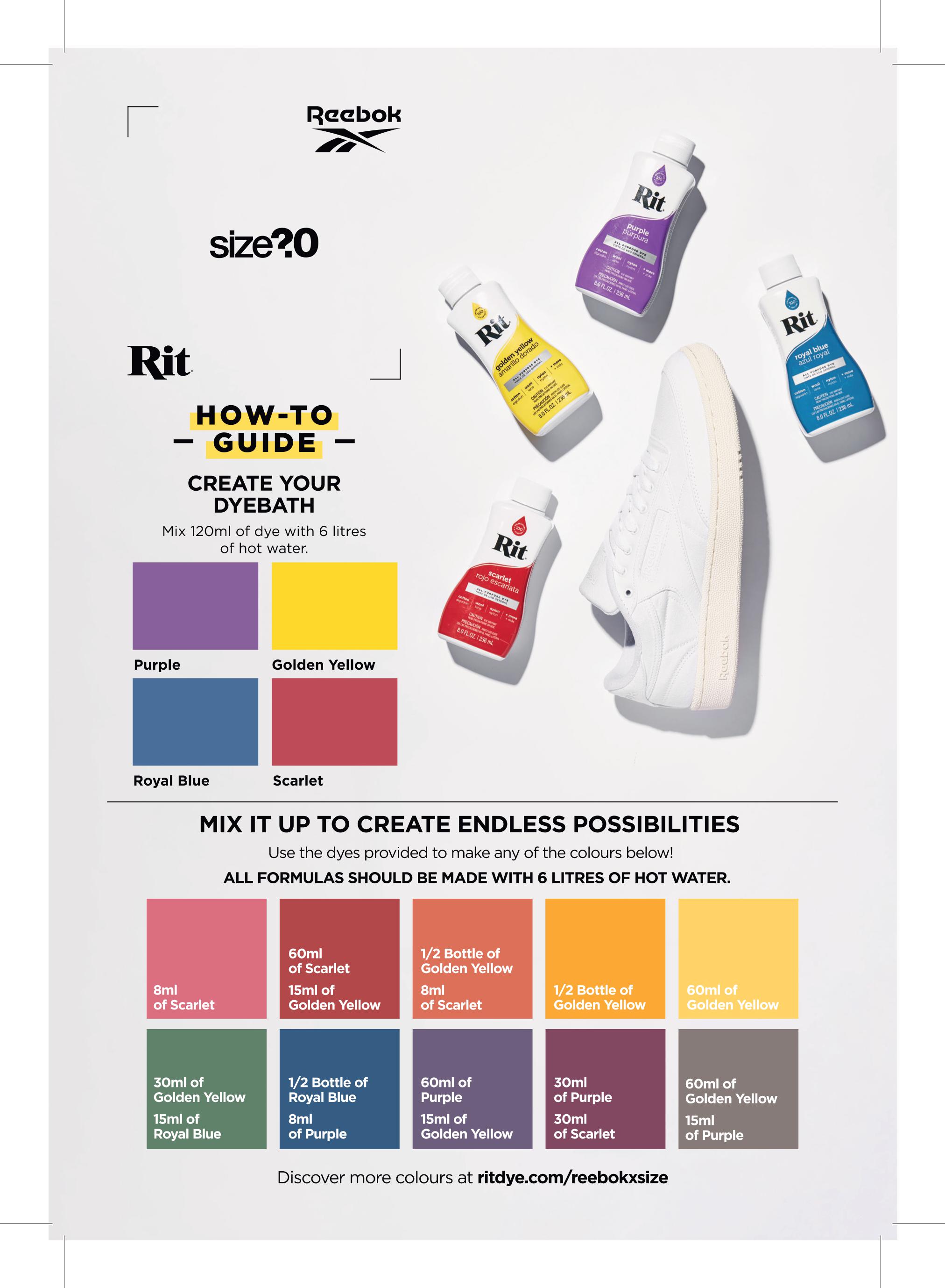 With the release of our exclusive Reebok Club C ‘Self Dye’ looming, we’ve reached out to dye masters Rit who’ve kindly put together a series of ‘how to’ guides to make customising your trainers a breeze.