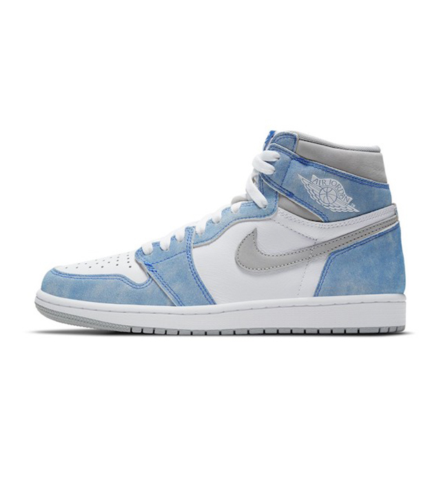 The ‘Hyper Royal’ arrives with smooth white and grey leather on the upper with its titular cloudy blue suede overlaying it. Classic Swooshes loop around the sidewalls and Wing branding offers some Jordan heritage further up this high-rising silhouette.