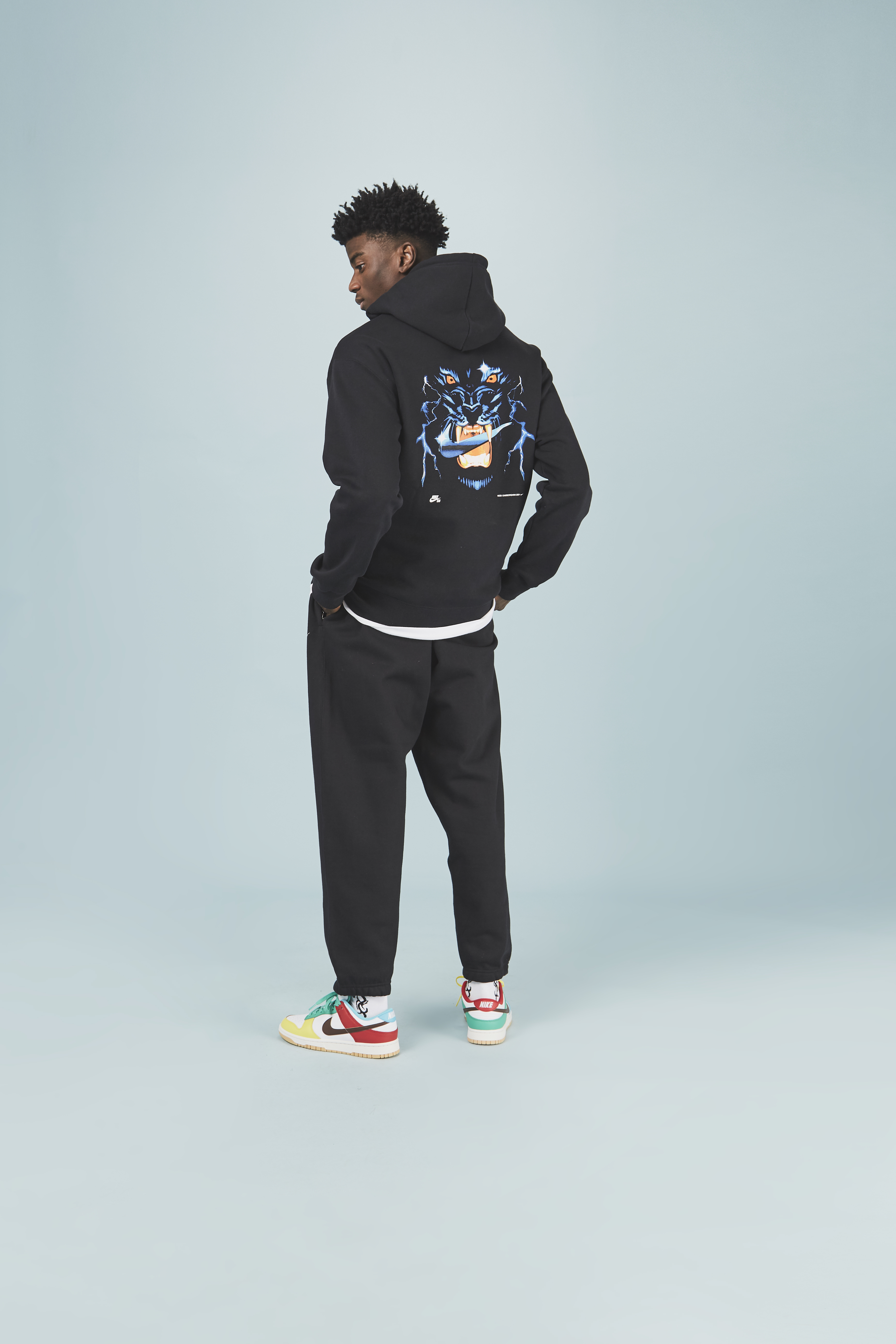 Samborghini is a well-known name in the music industry for his unique graphic designs. He has made graphics for the likes of Migos, Pop Smoke, Katy Perry, Selena Gomez and Billie Eilish. Samborghini’s original works are also printed on his own clothing range, adding his unique artistic flair to staple streetwear pieces. Nike SB is now teaming up with Samborghini for a fresh new range of apparel that will elevate your summer outfits.