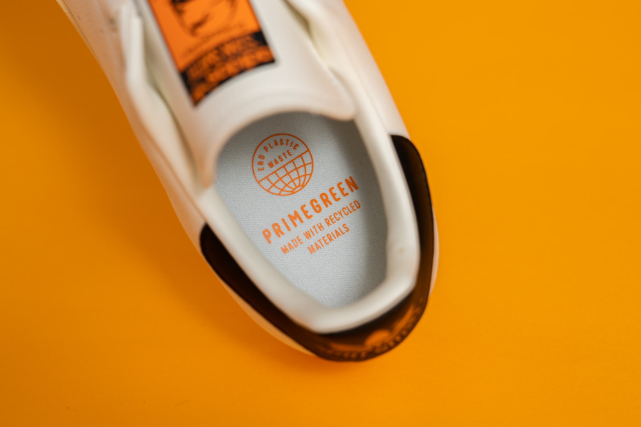 At size?, we are huge fans of this adi grail, and we are astounded by the brand’s work in making the shoe sustainable while keeping its legendary look. Boasting a fully sustainable Primegreen upper, we decided to keep this shoe clean and crisp – a look synonymous with this shoe. We have applied accents of our signature orange and black hues, visible on the insole, heel and the embossed tongue logo.