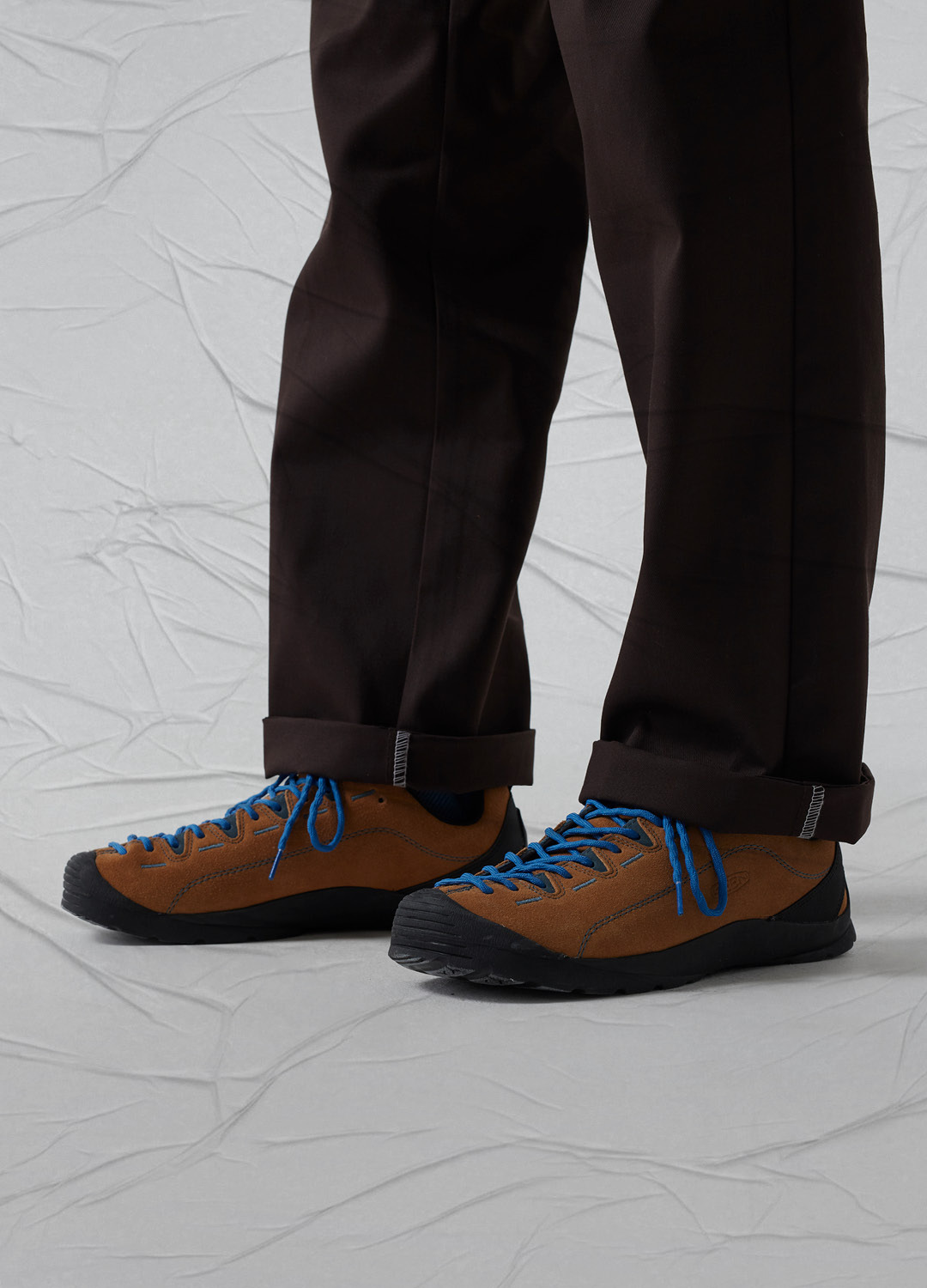 Next up, we have added some super-snug Carhartt WIP into the mix, with the cream and tan coloured OG Arctic Jacket. Designed with organic cotton ‘Dearborn’ Canvas, this functional coat is built for comfort and enduring the elements. Another important element of any outfit is the trainer and pant combination. We always think that a pair of Dickies 874 Work Pants are an easy option that delivers authentic workwear style. Additionally, we have styled these with the trail-ready Keen Jasper silhouette, adding some outdoor readiness underfoot.